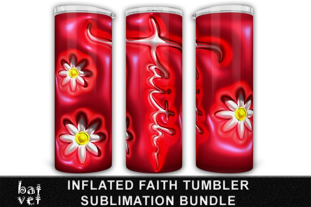 20 Oz Tumbler Wrap Puffy Faith and Flowers Inflated 3D Design Sublimation.