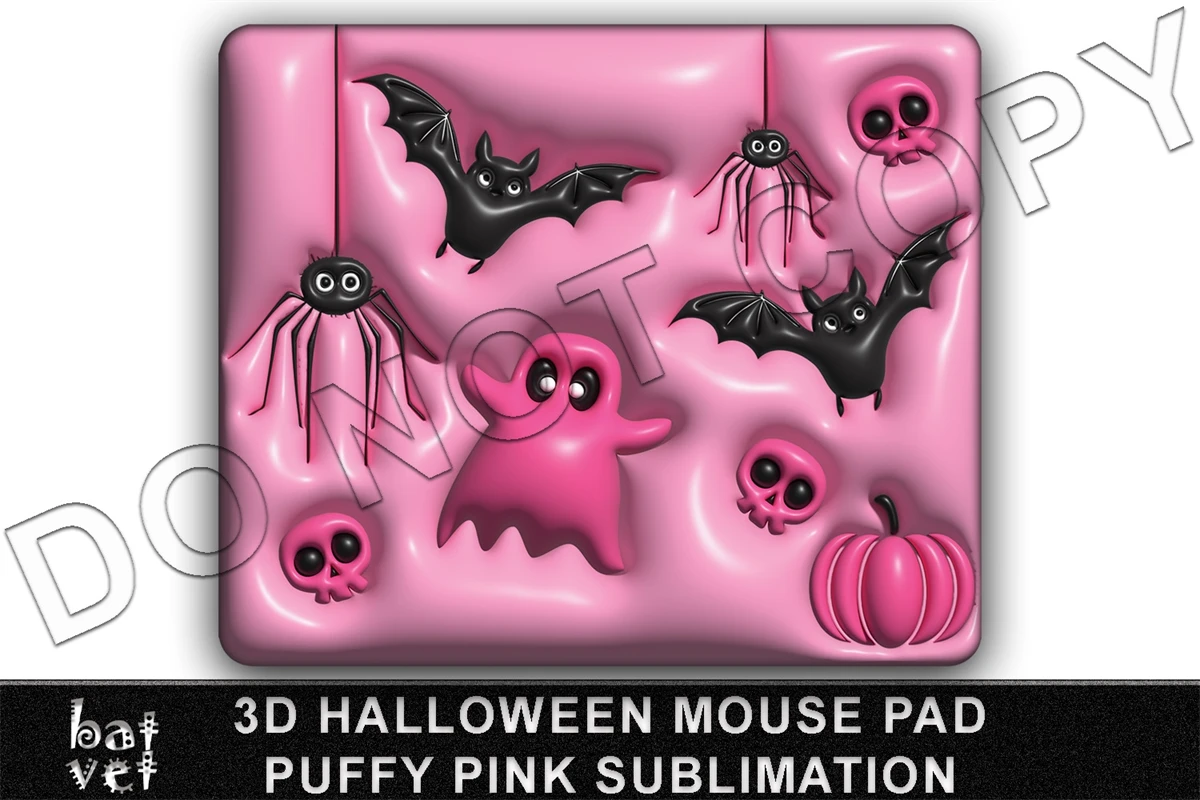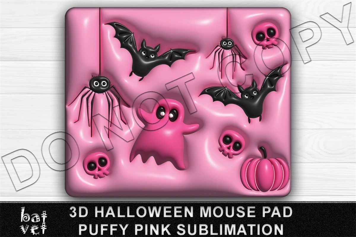 3D Inflated Pink Halloween, Halloween Pumpkin, Hlloween Bat, Pink Ghost, Spider Bubble Wrap Sublimation Mouse Pad.