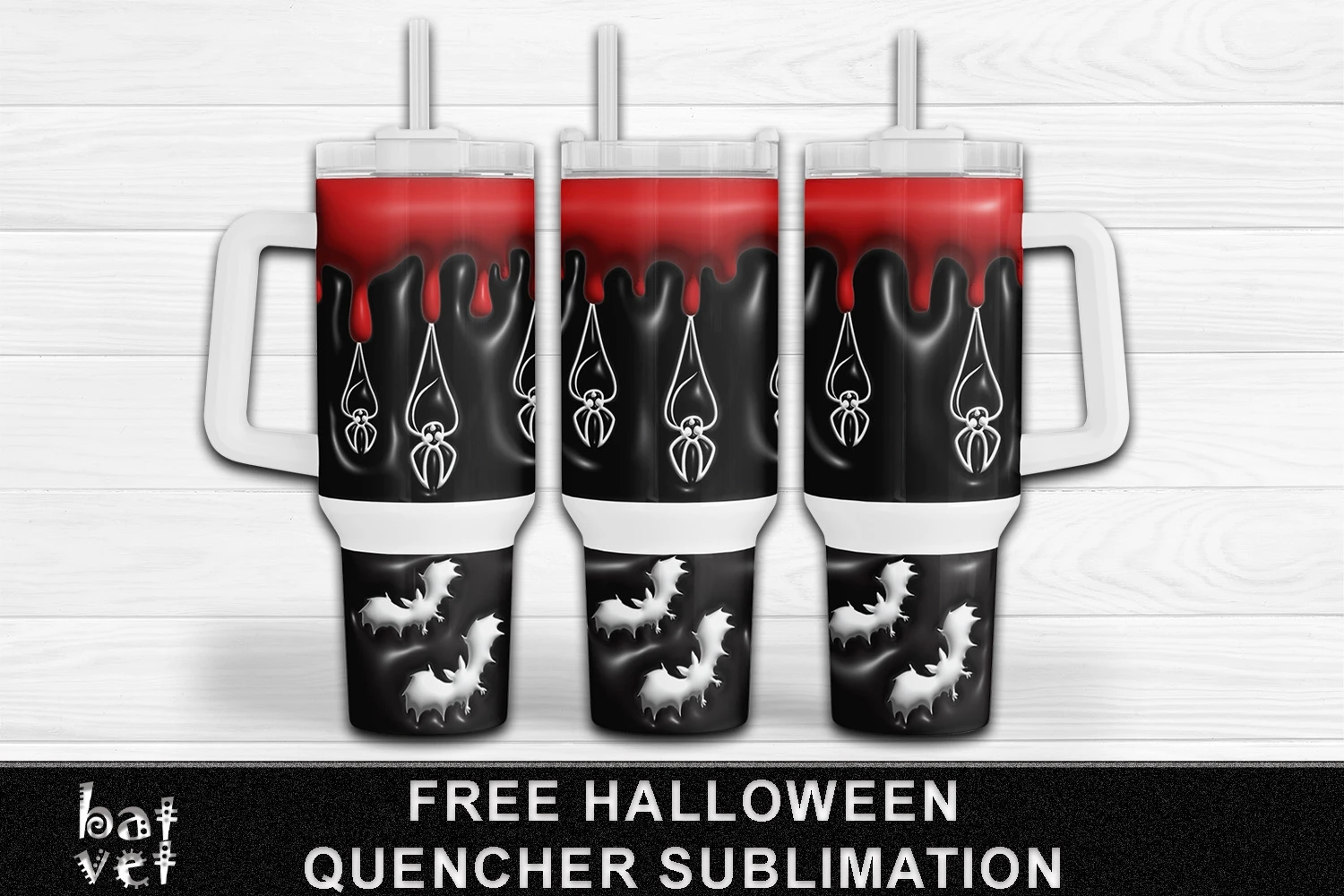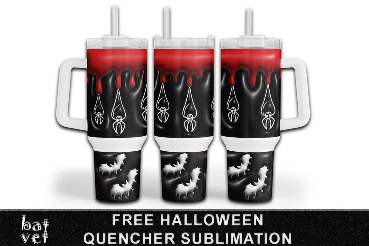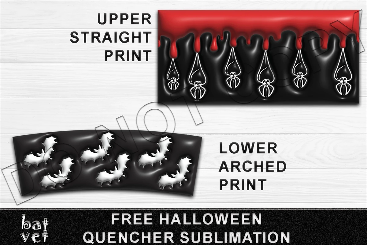 20 Oz Tumbler Wrap Puffy Halloween Bats, Blood Drip Inflated 3D Design Sublimation.