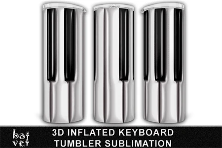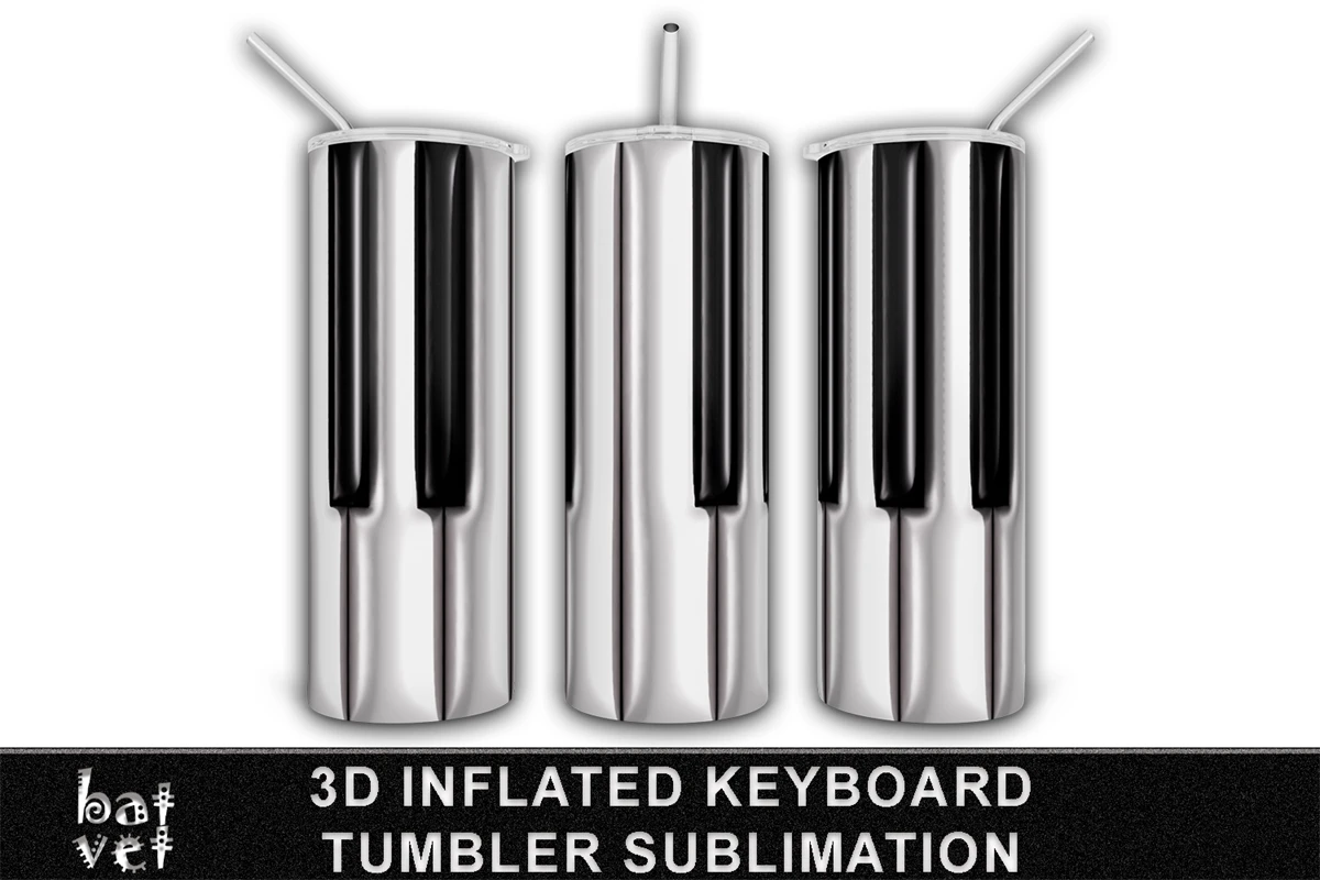 20 Oz Tumbler Wrap Puffy Piano Keyboard Inflated 3D Design Sublimation.