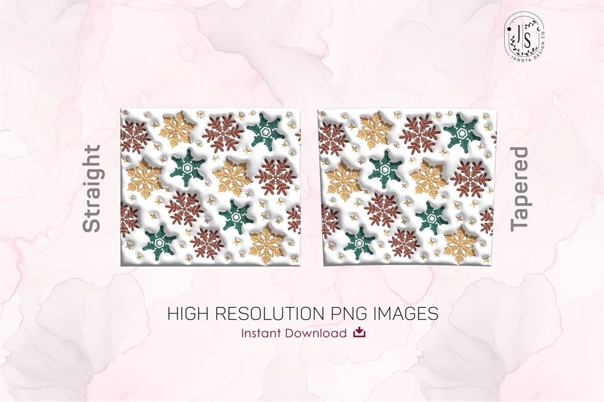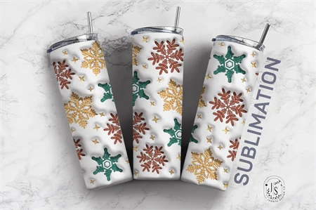 Add some sparkle and magic to your winter drinks with this Inflated Snowflakes Tumbler PNG. This is a digital download of a puffy snowflake tumbler wrap that you can use to create your own 3D winter tumbler with sublimation. You will receive a high-resolution PNG file that is ready to print and apply to a 20 oz tumbler