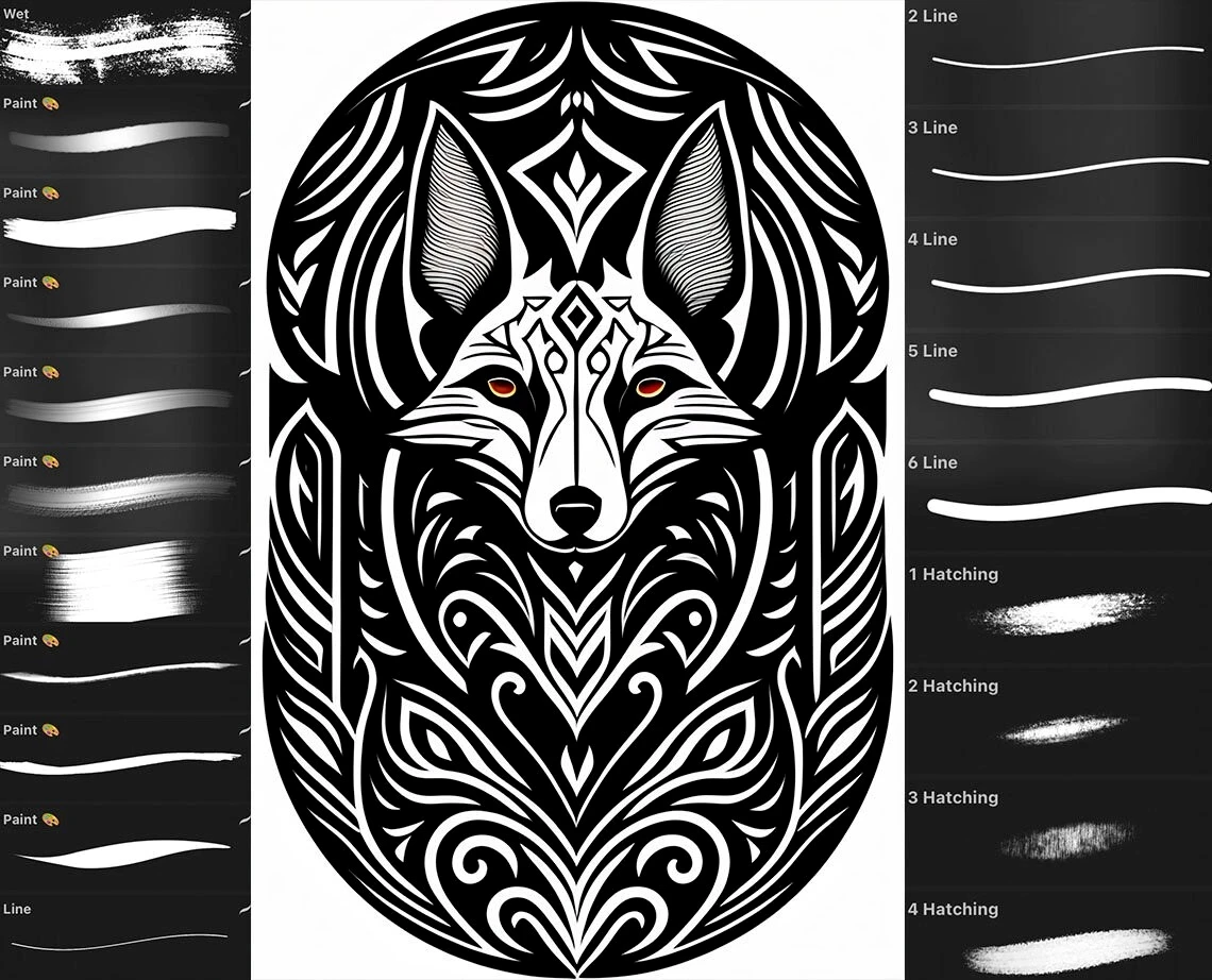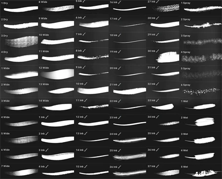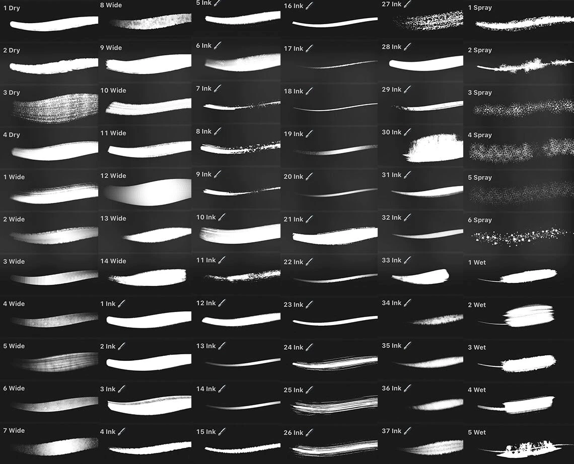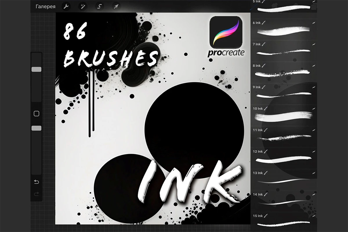 excellent set of brushes for painting Ink, print ink, Pencil in Procreate