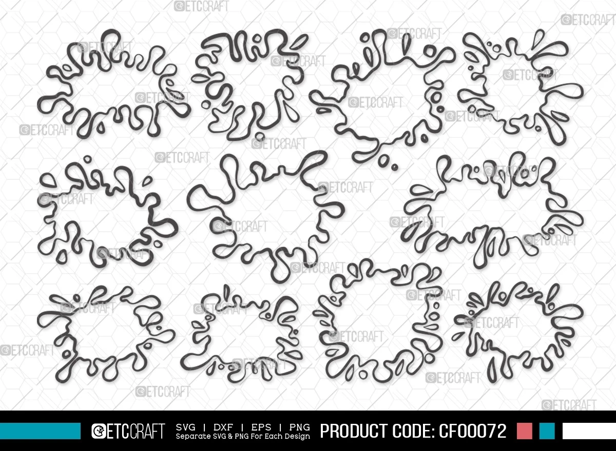 Explore the world of creativity and expression with our "Ink Splatter Outline Paint Spots" SVG Cut File Bundle. This collection brings you a diverse range of versatile ink splatter designs outlined for your artistic convenience.
