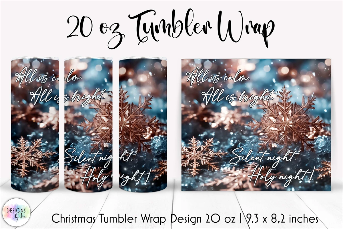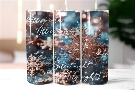 Beautiful Christmas tumbler wrap designs with shimmering snowflakes, stardust inspirational saying.
