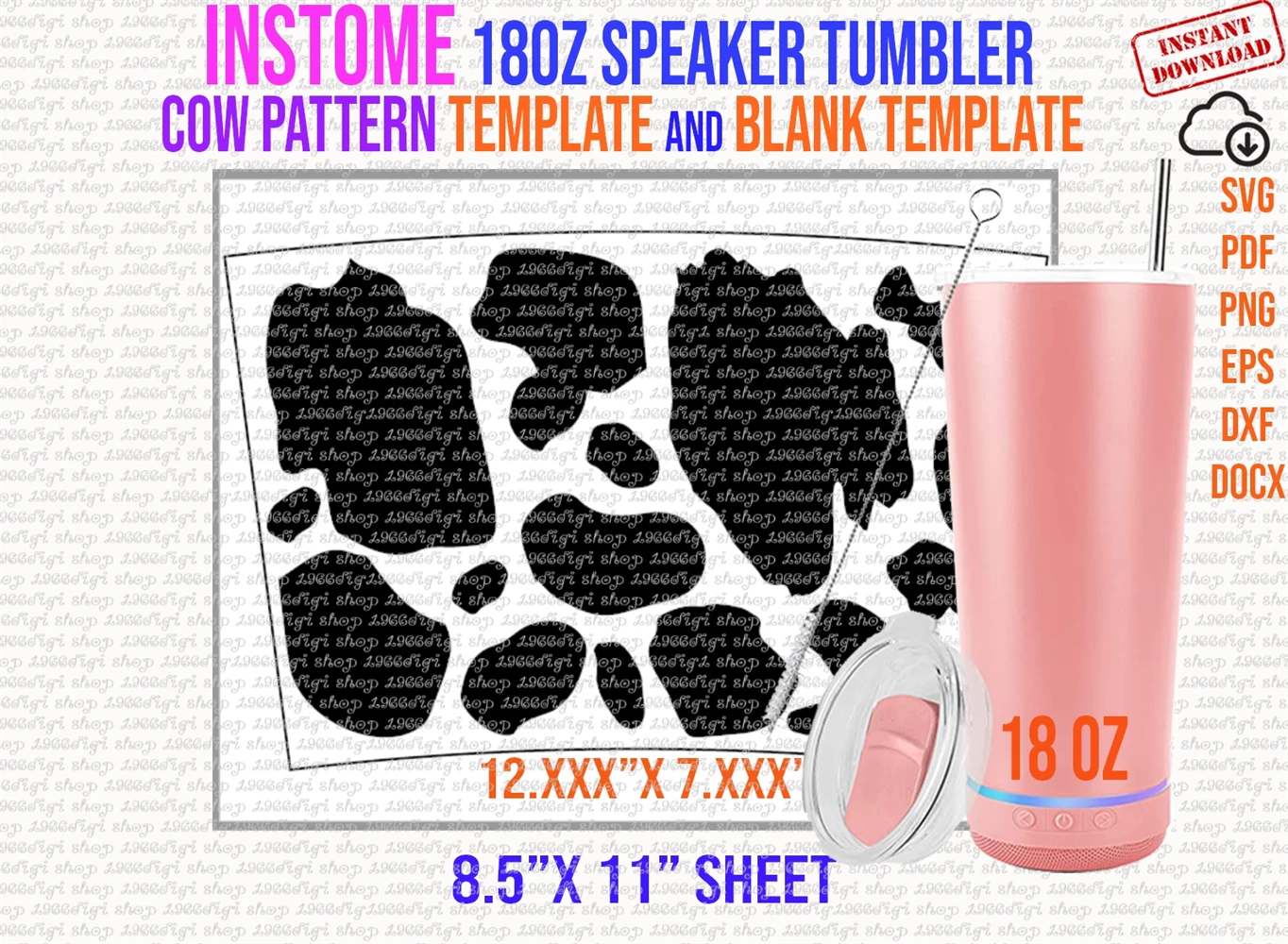Graphics are sized to fit the 18oz Instome Speaker Tumbler Cow Template