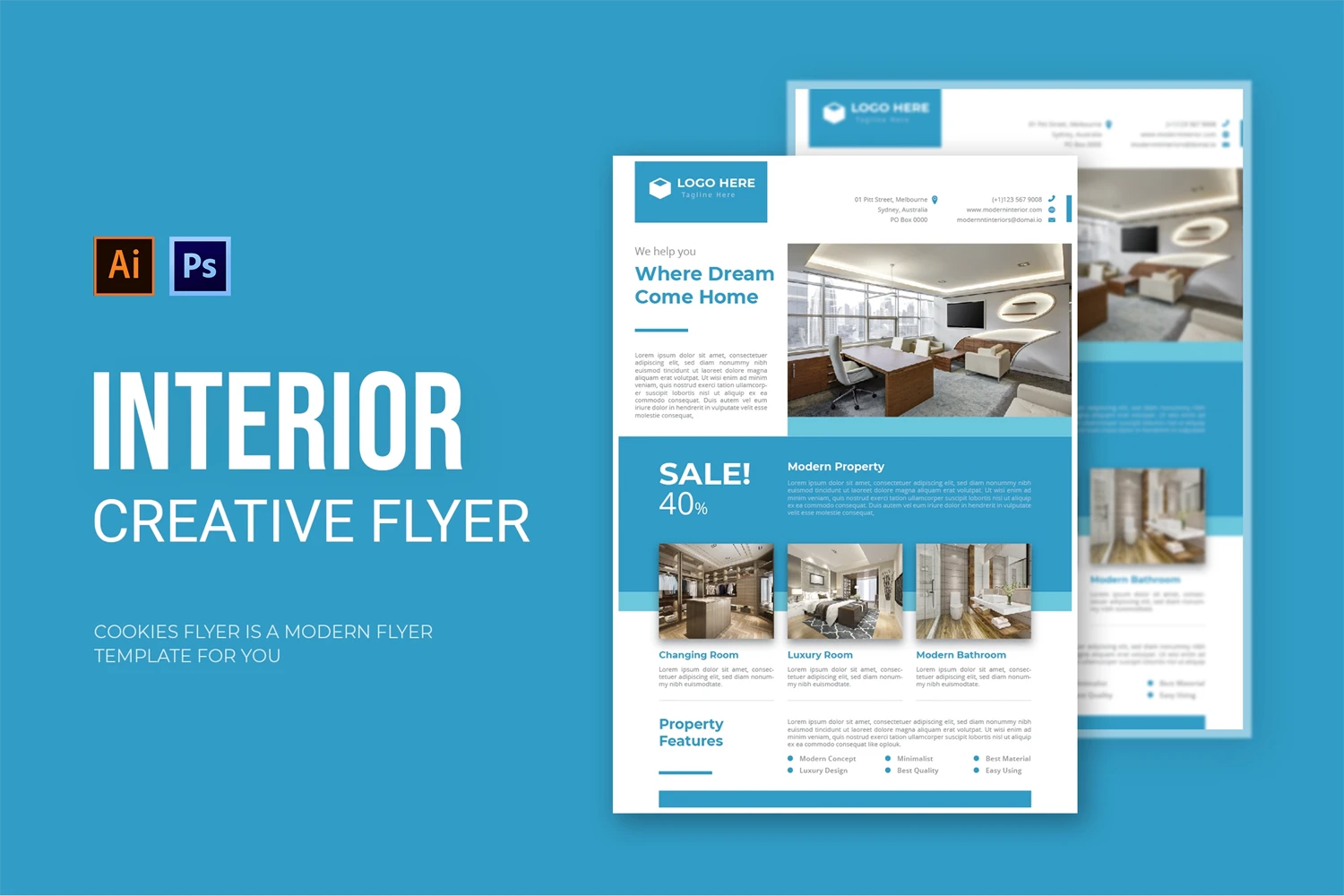 Interior - Flyer. This Flyer template is designed for your company's business needs. very clean and elegant, and also easily edited and adjusted to your liking