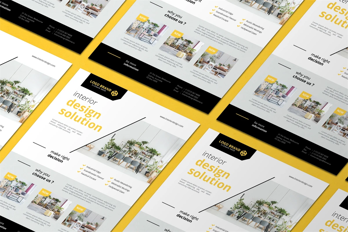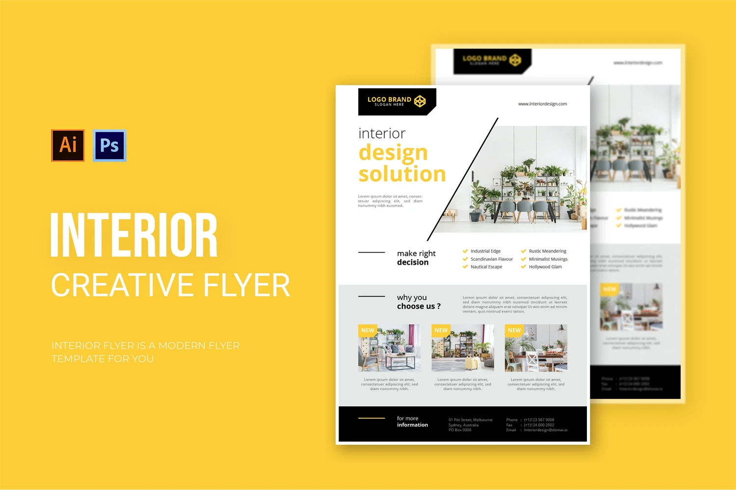 Interior - Flyer. This Flyer template is designed for your company's business needs. very clean and elegant, and also easily edited and adjusted to your liking