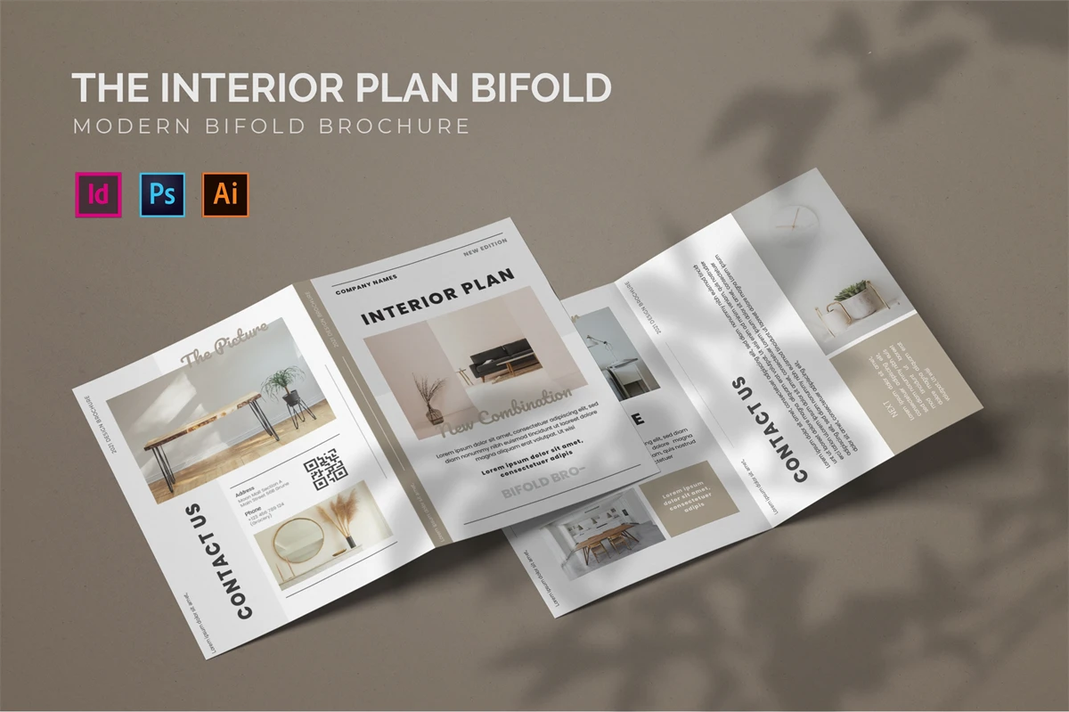 Interior Plan - Bifold Brochure We present this Bifold Brochure for you, simple and very elegant, and this Bifold Brochure is suitable for all types of your business, made with Adobe InDesign (INDD), Adobe Photoshop (PSD) and Adobe Illustrator (AI), very easy to customize, Hope you Like it, dont forget to rate, Thanks.