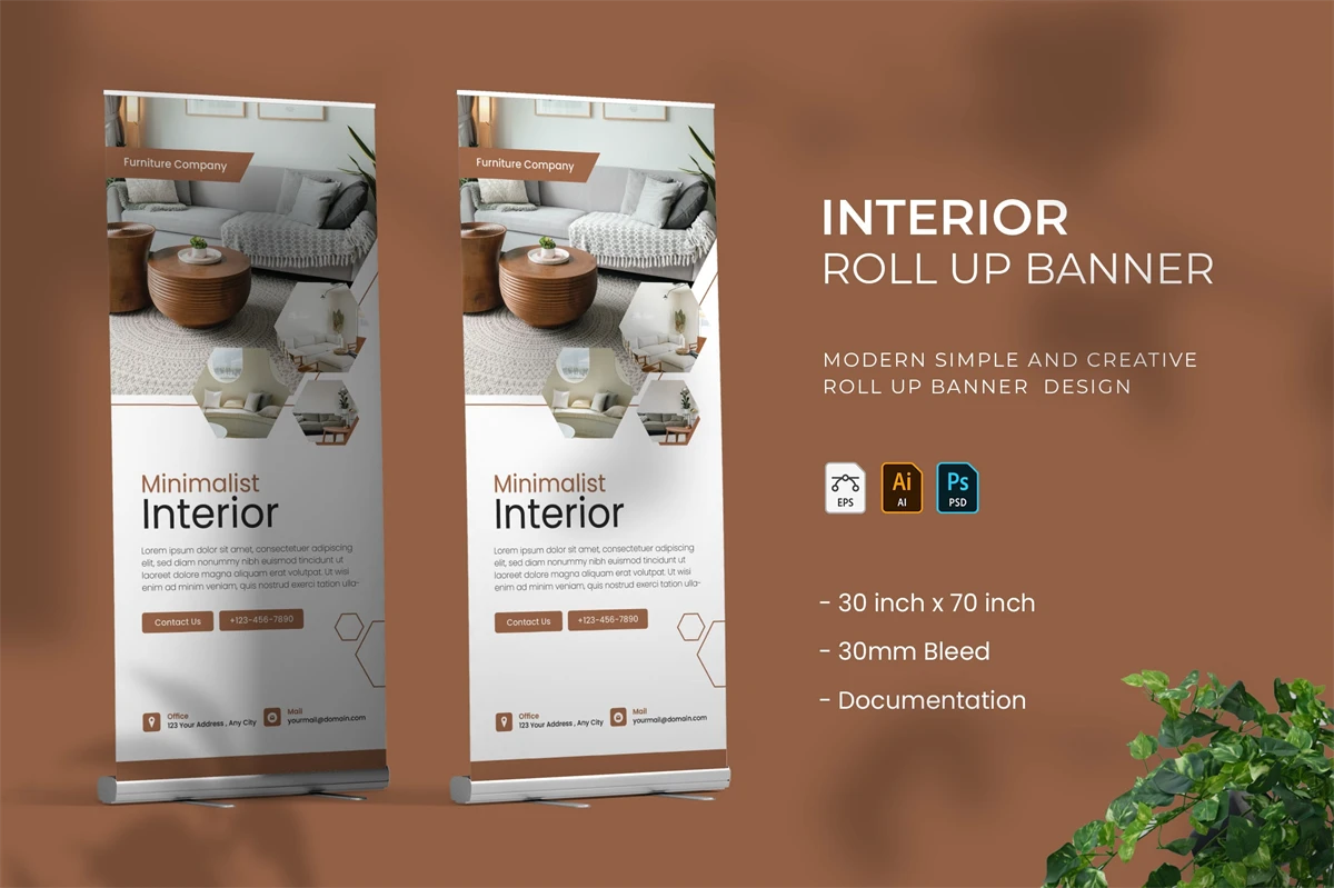 Roll-Up Banner Template: This is the best way to sell more furniture if you are selling it. With this beautiful roll-up banner, you can beat out your competitors and make your sales area look better. When you want to make an impression, its very important that your banner stand has the right design and information. Bring your project to the next level and see what can be done.