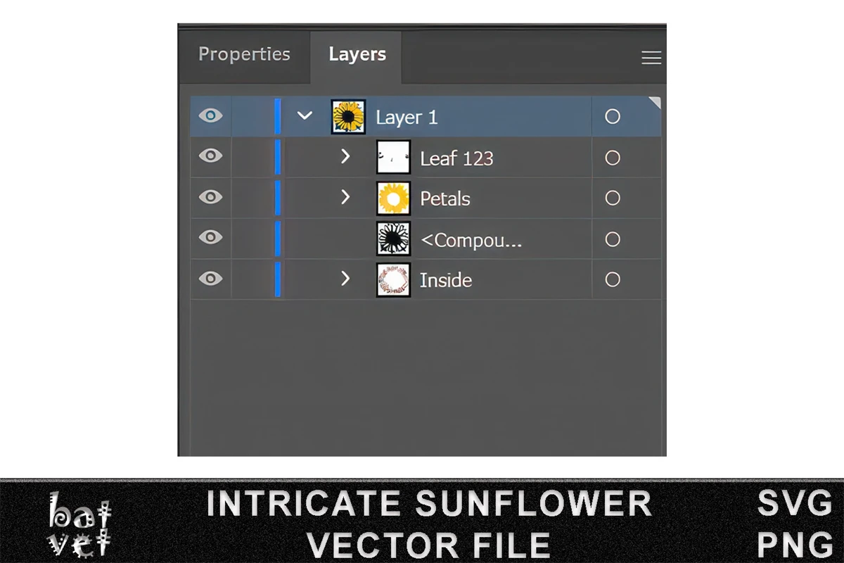 Vector Files Sorted by Color and Components. PNG File Flat and Inflated Sunflower Designs.