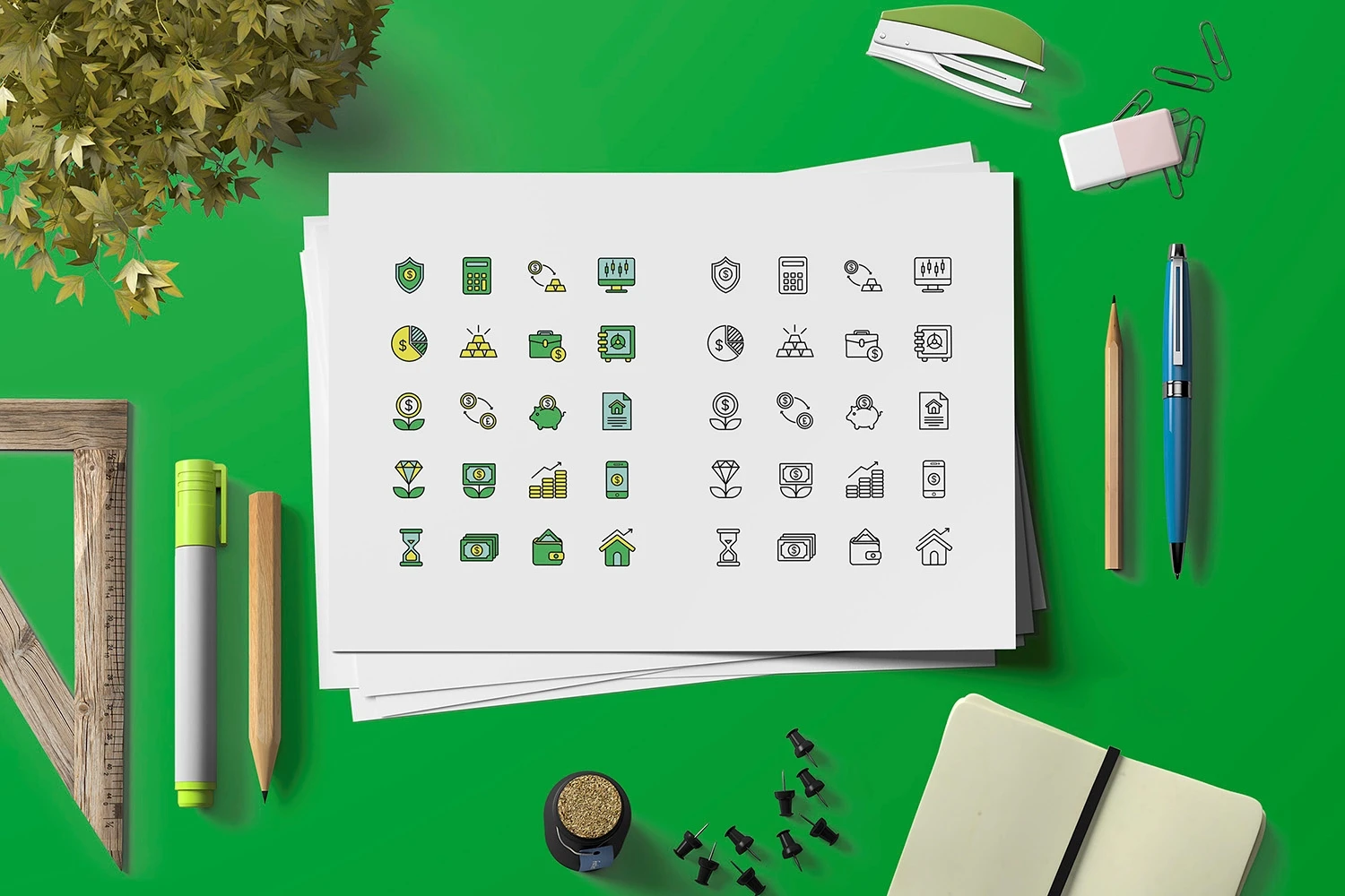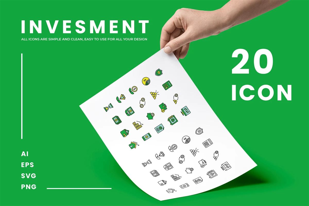 Don't miss it Investment - Icons This professional Icons pack, high quality, for professional designers, easy to use, fully editable & customizable in Adobe Illustrator