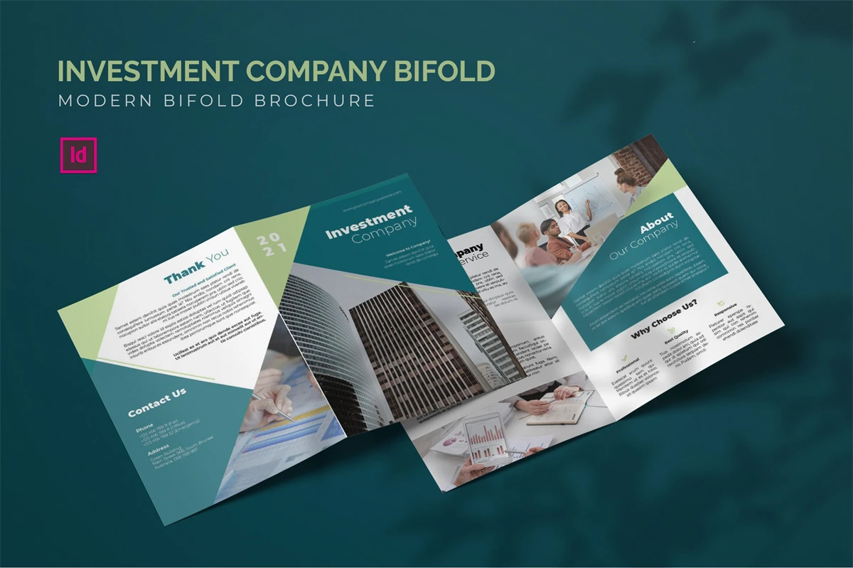 Investment Company - Bifold Brochure We present this Bifold Brochure for you, simple and very elegant, and this Bifold Brochure is suitable for all types of your business, made with adobe inDesign, very easy to customize, Hope you Like it, dont forget to rate, Thanks.