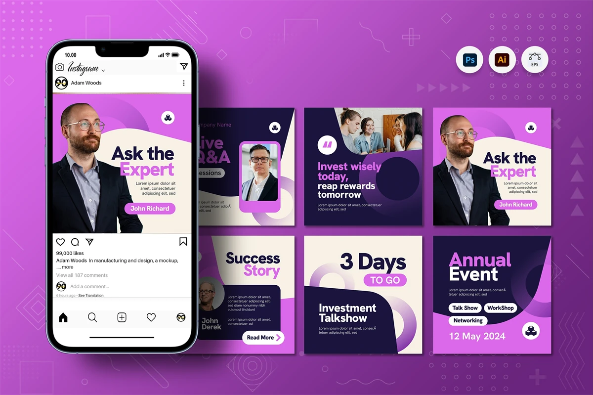 Give your Instagram Post account a design upgrade. This template is editable and customizable. This template is ideal for any instagram user who wants to have a good looking feeds.