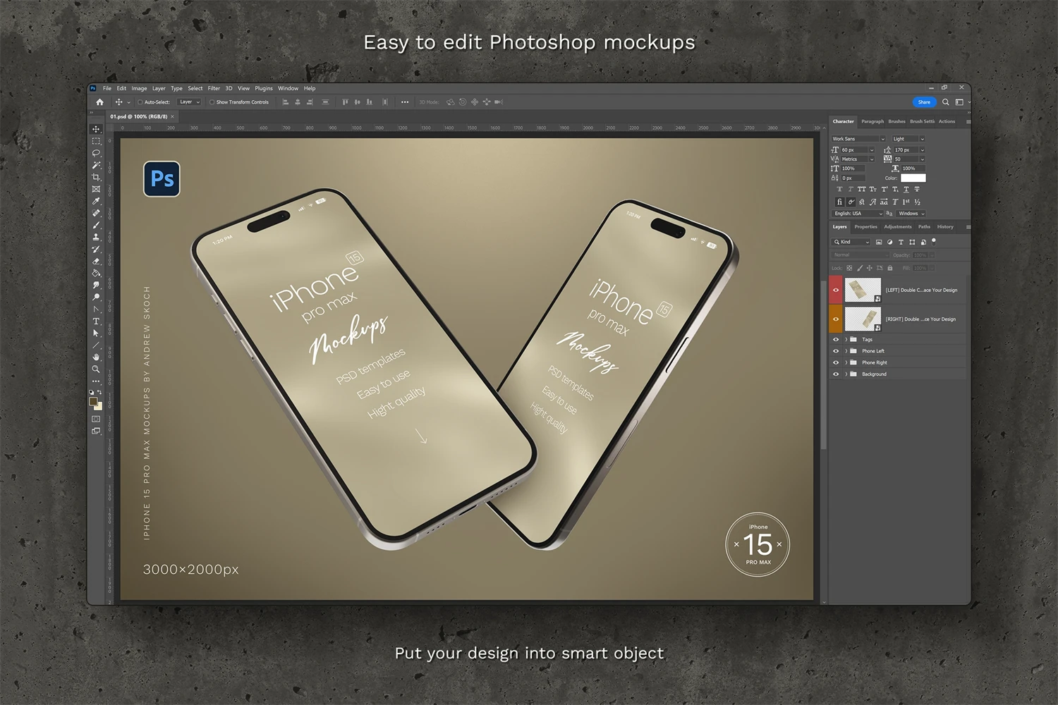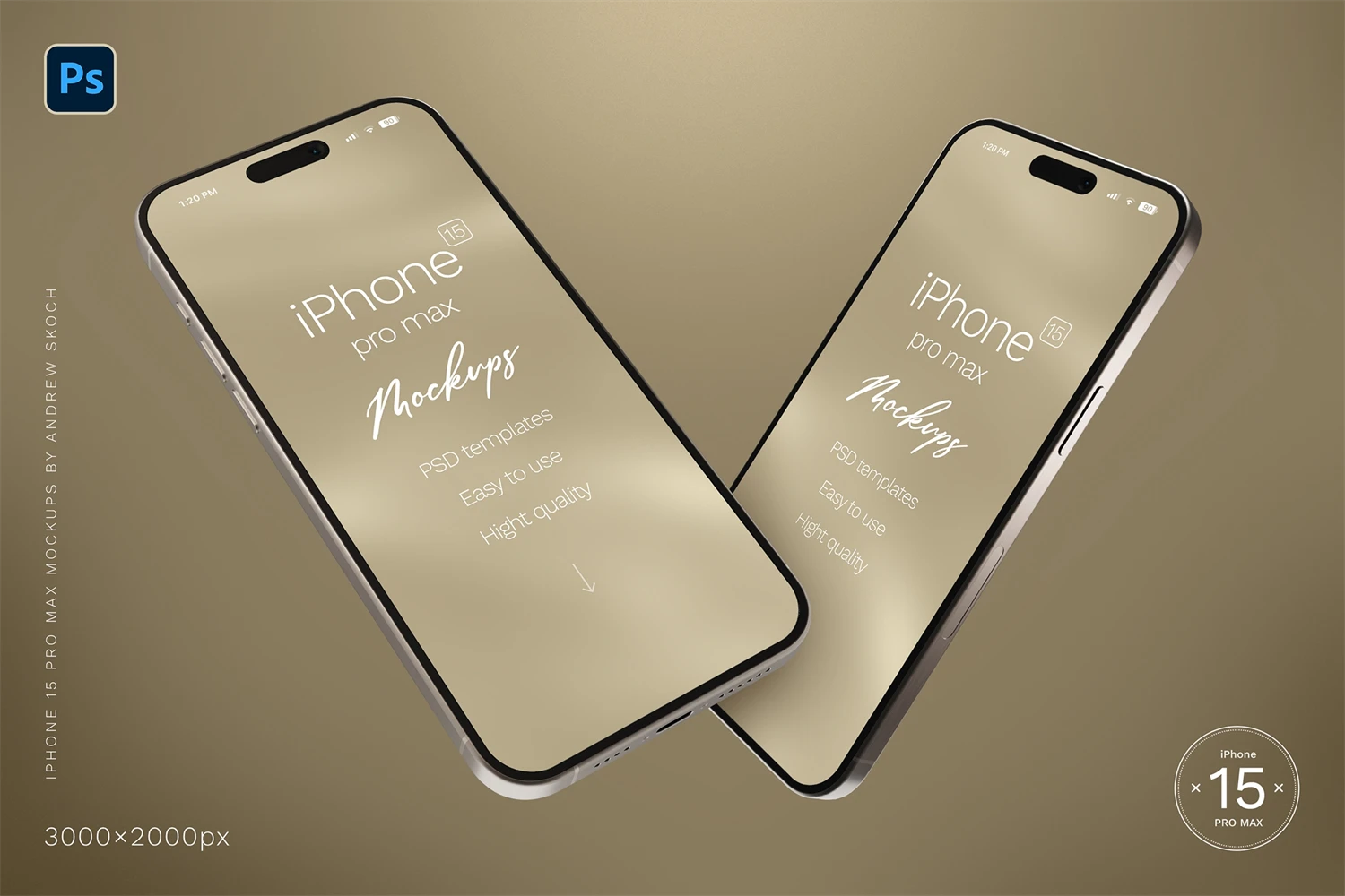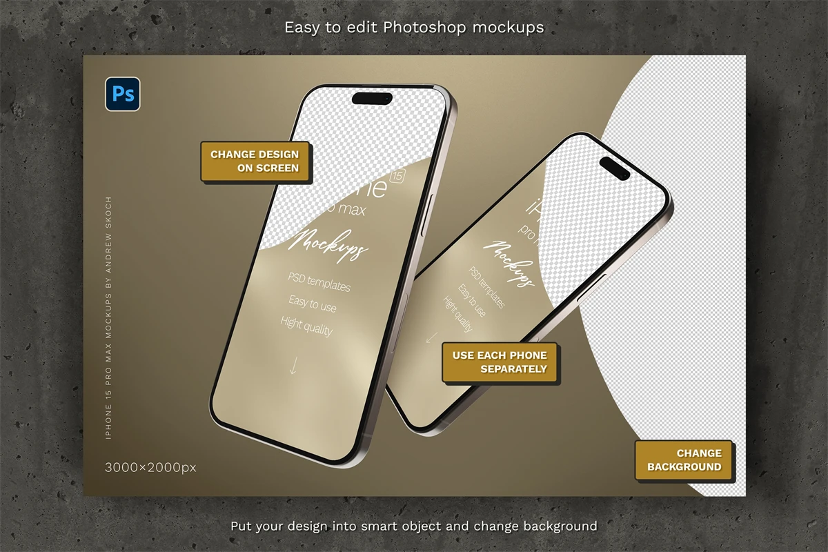 High quality iPhone 15 pro max mockups. 6 Photoshop mockups, 30002000 pixels, 300 DPI