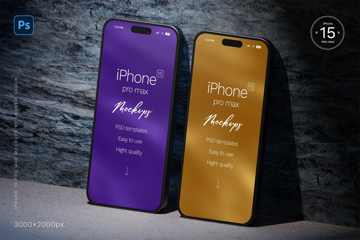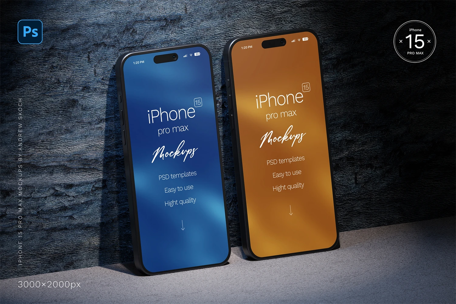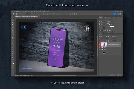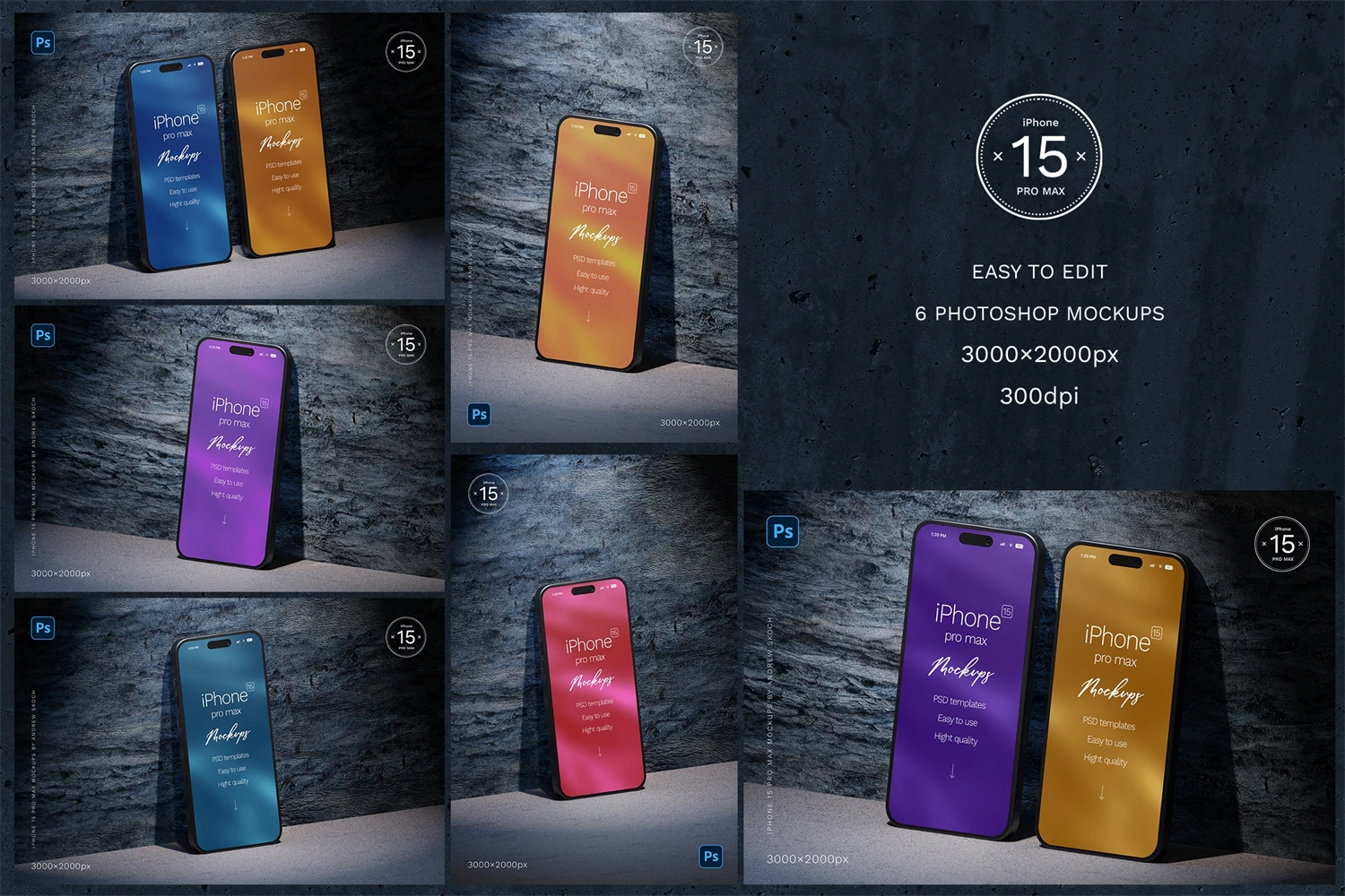 High quality iPhone 15 pro max mockups. 6 Photoshop mockups, 30002000 pixels, 300 DPI