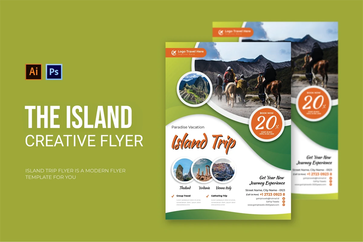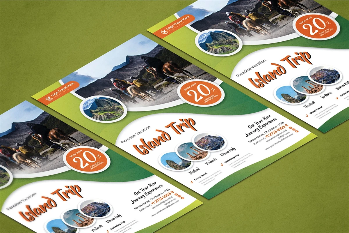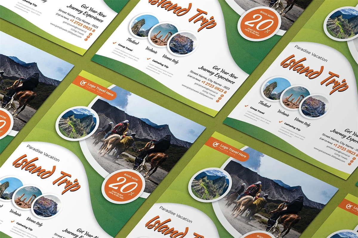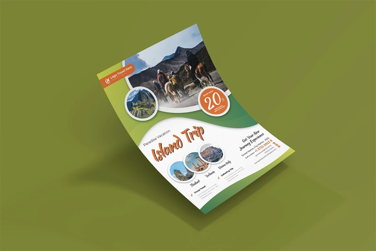 Island Trip - Flyer. This Flyer template is designed for your company's business needs. very clean and elegant, and also easily edited and adjusted to your liking