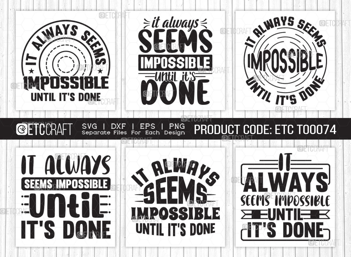 Product Description about It Always Seems Impossible Until Its Done SVG Bundle: