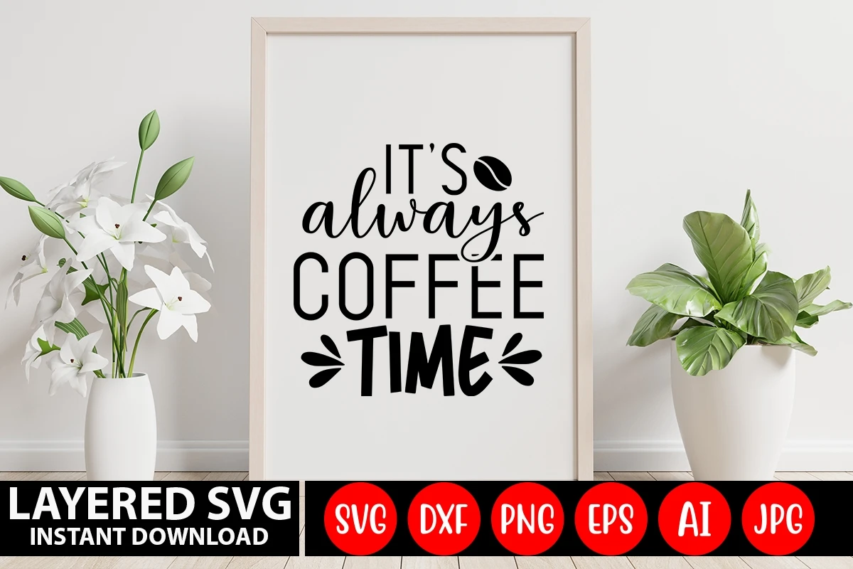Its Always Coffee Time SVG Design, SVG Cut File