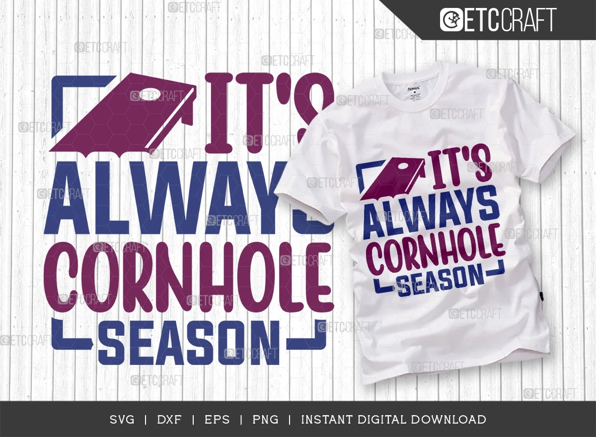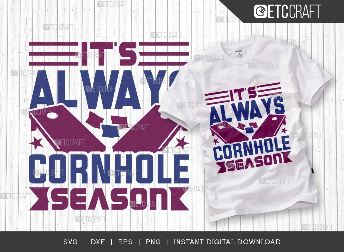 Unleash your inner cornhole enthusiast with the "It's Always Cornhole Season SVG Bundle." Craft, customize, and create with these playful and versatile designs that bring your love for the game to life. Get yours now, and let the cornhole fun begin!