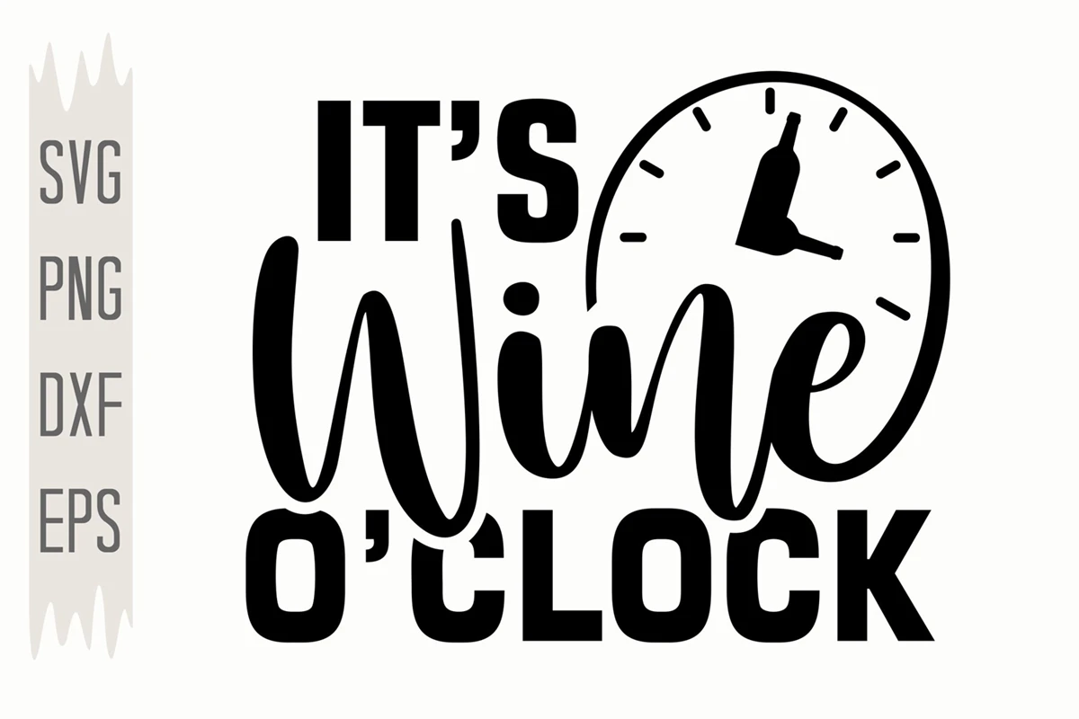 It's Wine O'Clock Svg, Funny Wine Svg, Wine Quote Svg, Wine