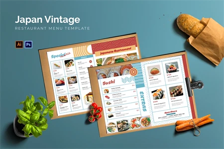 Japan Vintage - Restaurant Menu. This template is great for your business and will make your customers interested, elegant, and easily editable according to your needs, this restaurant menu is perfect for, promos, cafes, hotels, resort shops online. etc. I hope you enjoy this restaurant menu