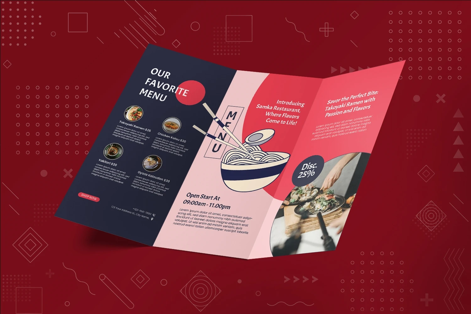 This trifold brochure template is great for any shop or store. They are also great for Black Friday sales brochures and magazine/newspaper ads. They can also be used for your fashion store, clothing store, shopping mall, accessory store, and multipurpose store, especially for a special event like a year-end sale. All files are well organized, so you can fast edit your text and all images.