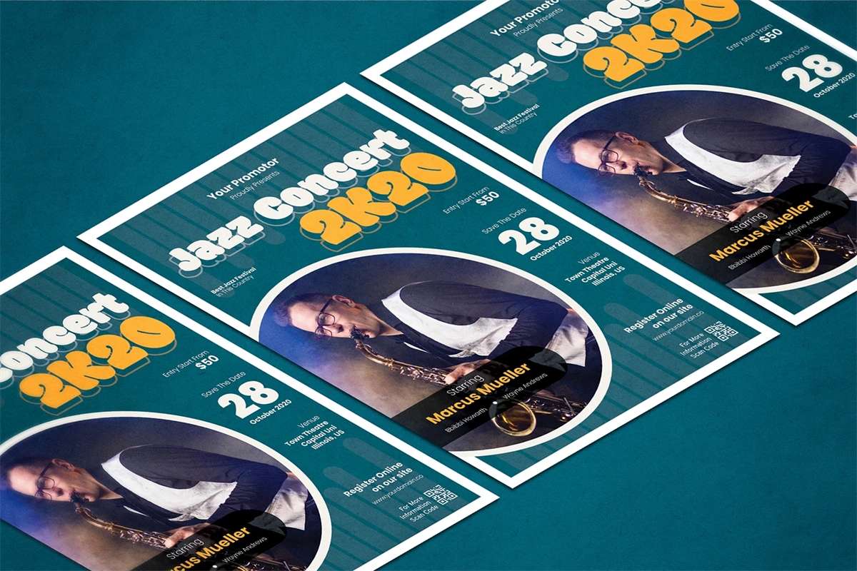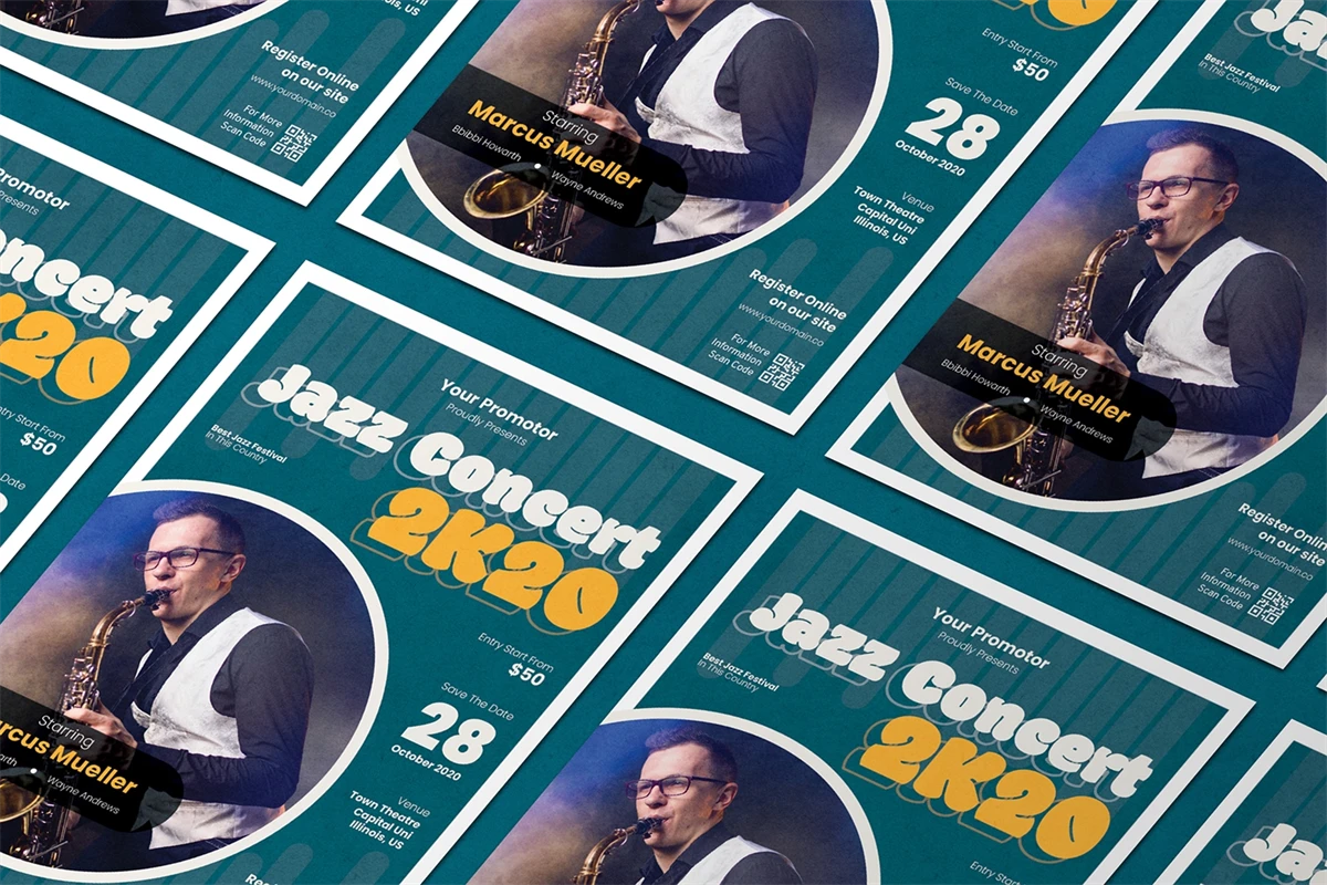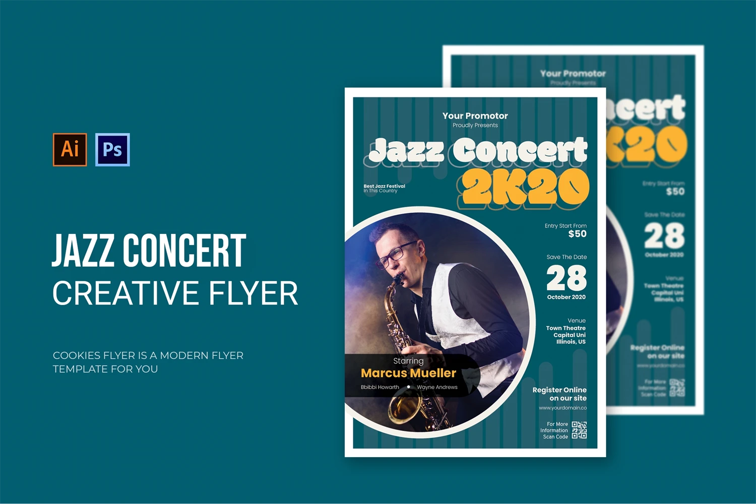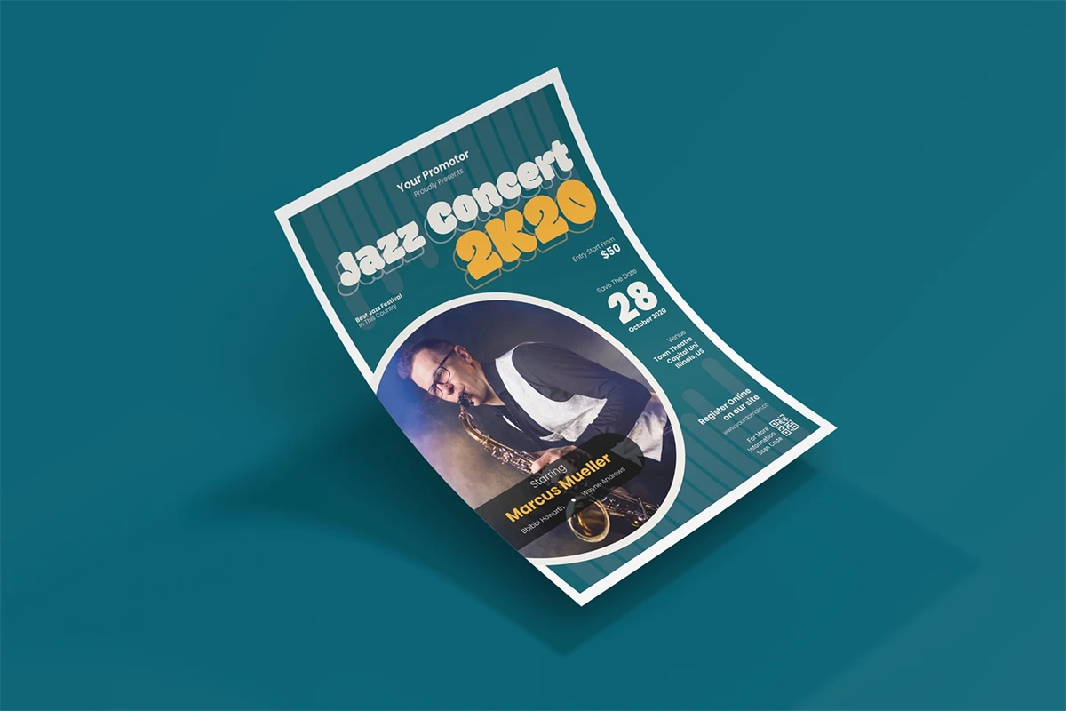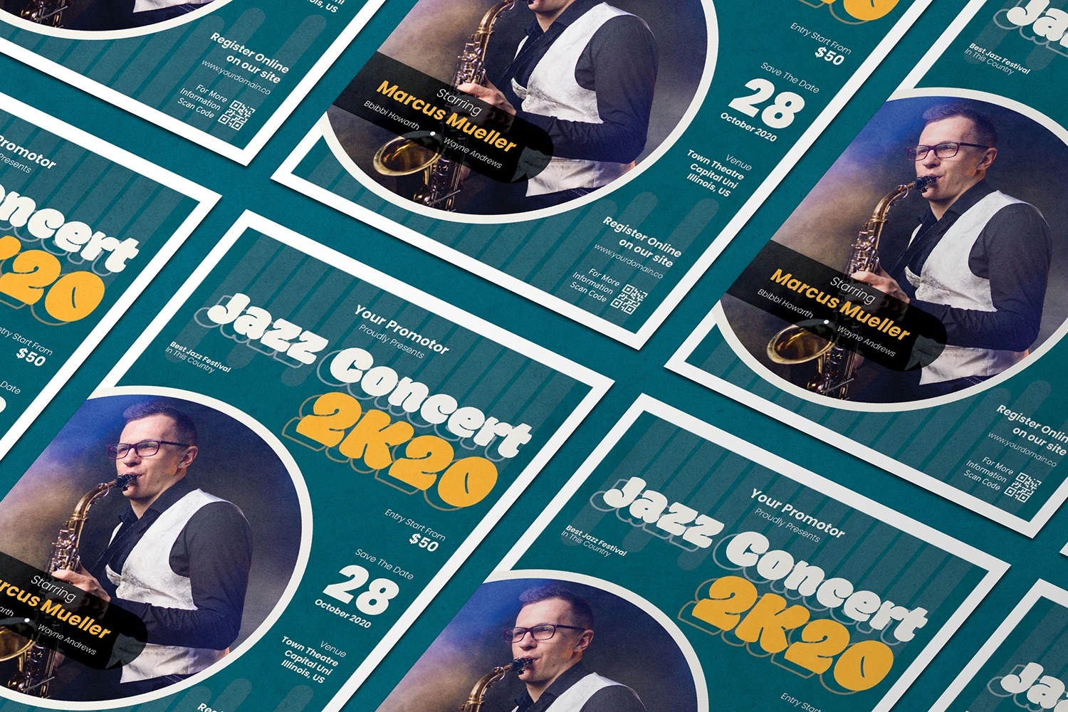 Jazz Concert - Flyer. This Flyer template is designed for your company's business needs. very clean and elegant, and also easily edited and adjusted to your liking