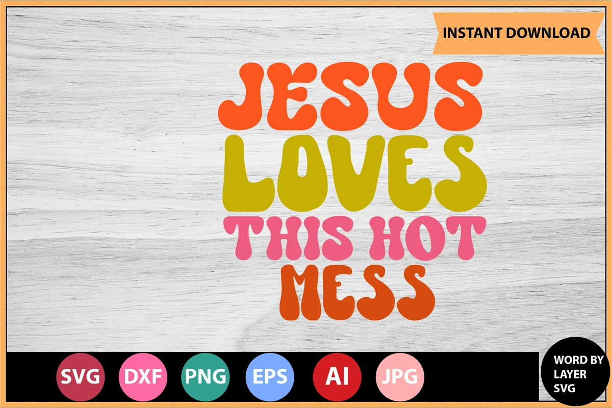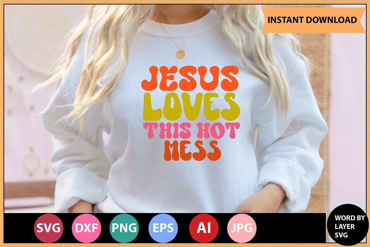 Jesus Loves This Hot Mess Retro SVG Design