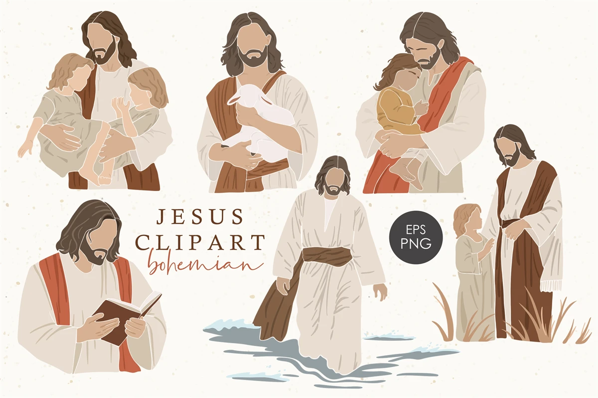 Jesus portrait clipart, Christian clipart, Boho Easter elements, Printable Jesus Portrait, Bible history clipart, Scripture Png items