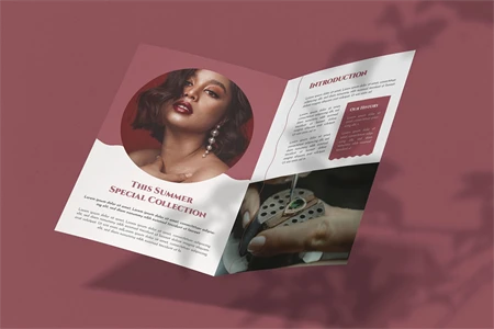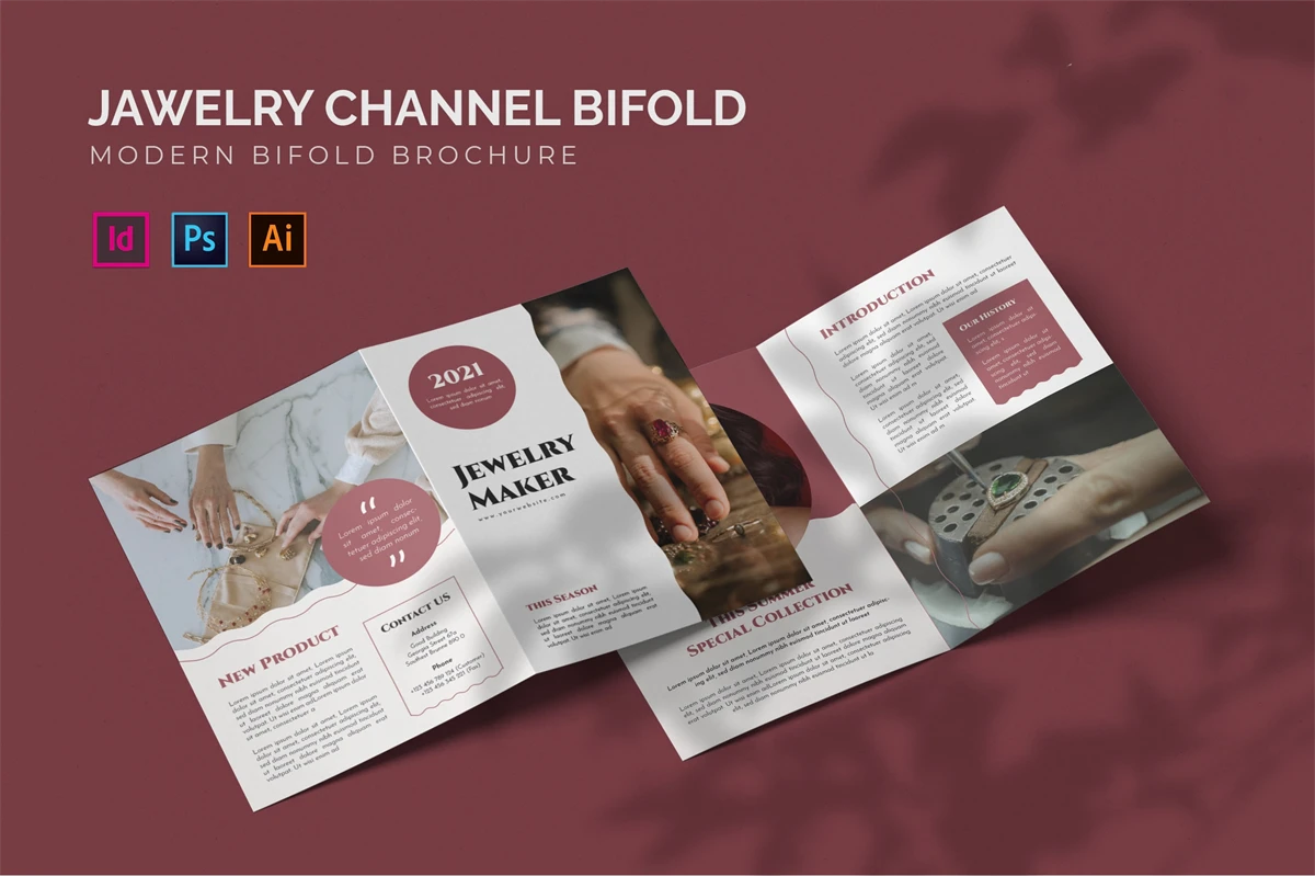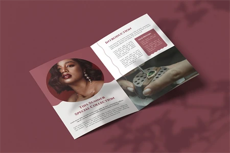 Jewelry - Bifold Brochure Here is a bifold brochure we created for you. It's basic yet sophisticated, making it ideal for promoting any of your business's services or products. It is very easy to customize. I hope you like it; don't forget to rate it, thank you.