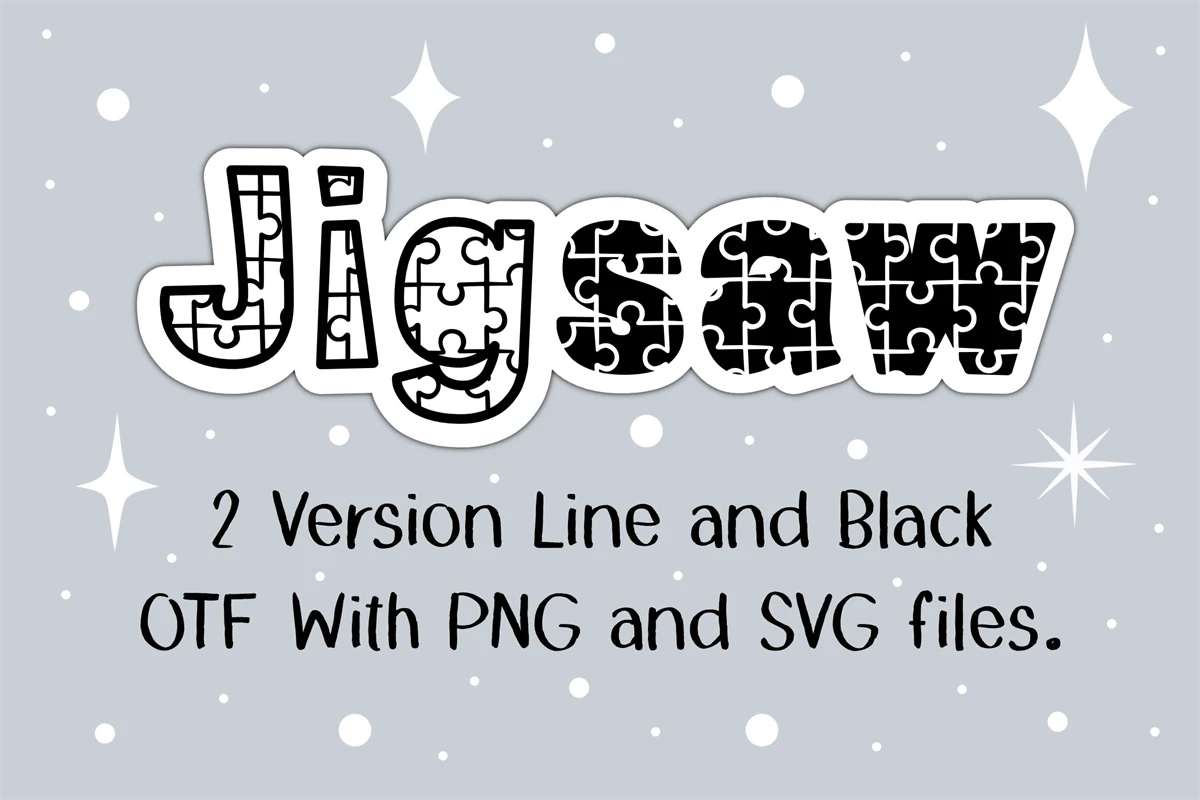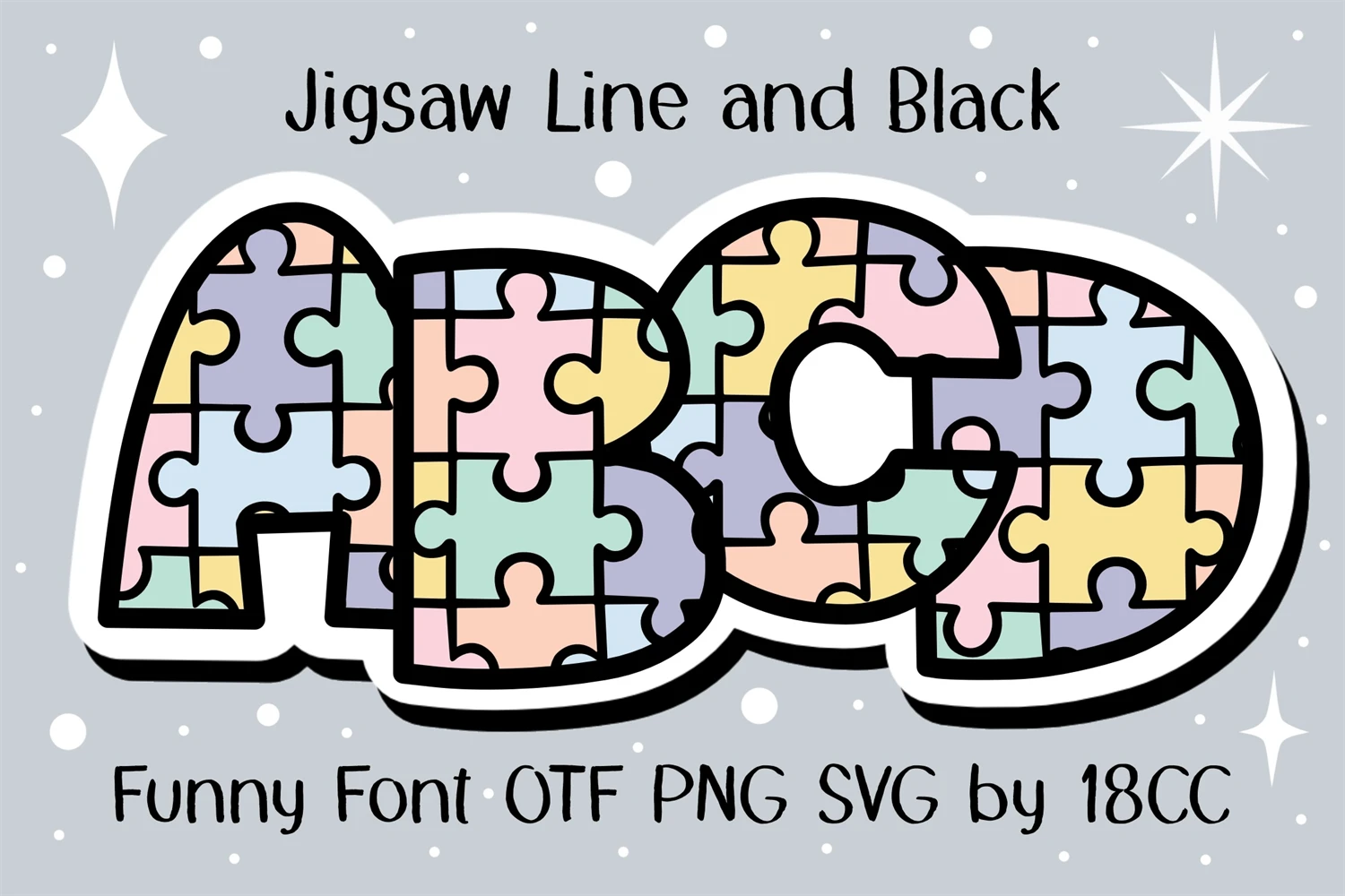 Jigsaw Line and Black are funny font. This font is the perfect fit for all of your t-shirt, logos, branding, social media, crafty DIY projects, and much more!