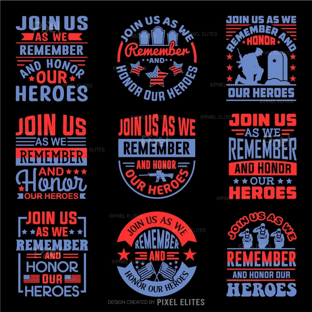 Celebrate the brave men and women who have served our nation with our Join Us As We Remember and Honor Our Heroes SVG Cut Files. This inspiring design features the American flag and a heartfelt message of remembrance, making it perfect for honoring soldiers and expressing gratitude for their sacrifices. Ideal for crafting T-shirts, mugs, and other DIY projects, this versatile Cricut craft bundle is a meaningful addition to your collection.