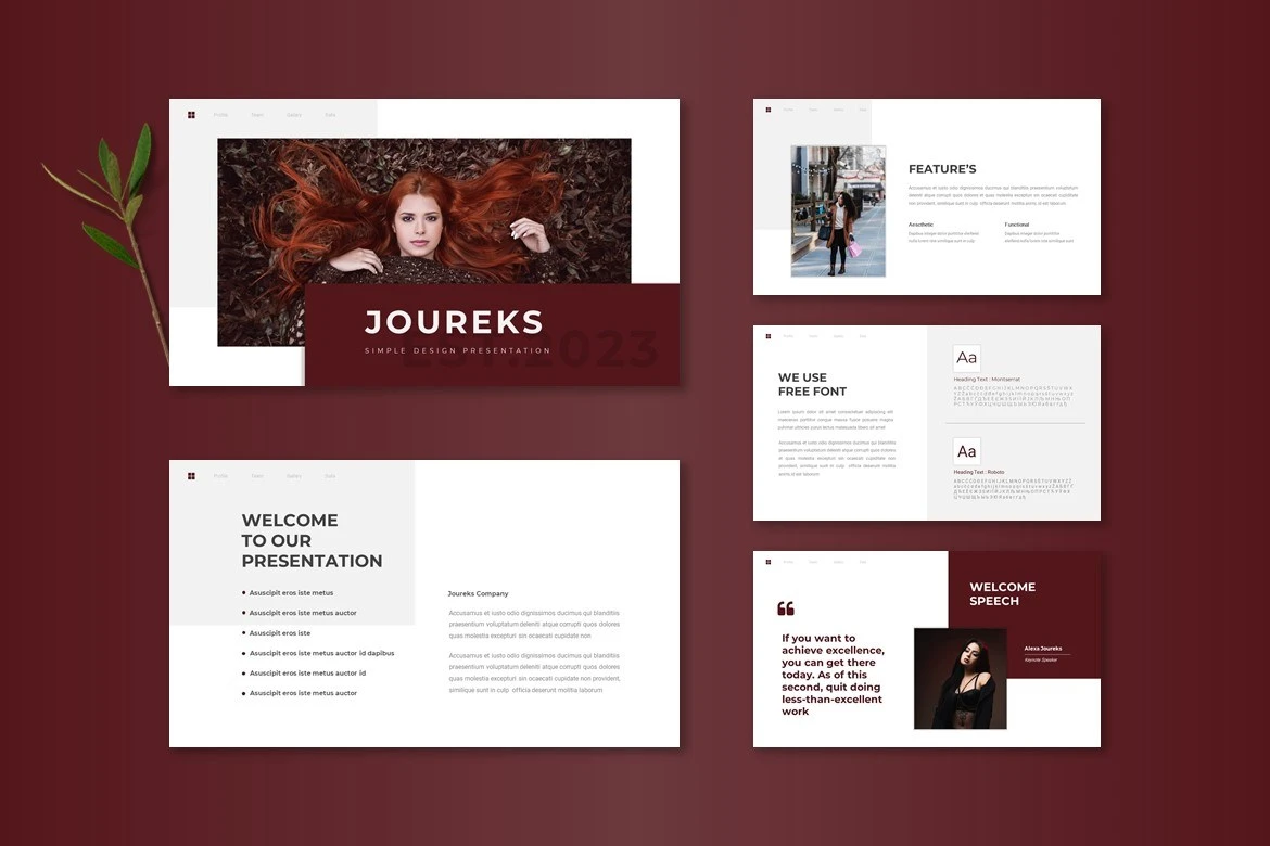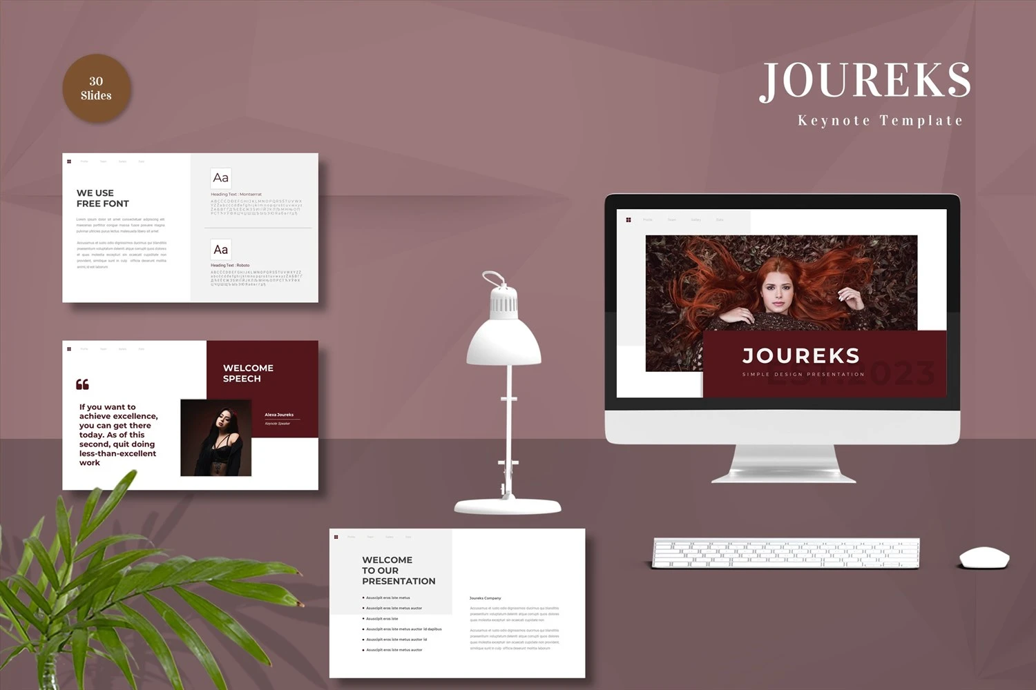 Get it now! **Joureks - Keynote Template** for All Business and Personal Needs All elements on this template are editable; input your content, replace your image with a placeholder, change the color, and all presentations include an animated slide to present your slides.