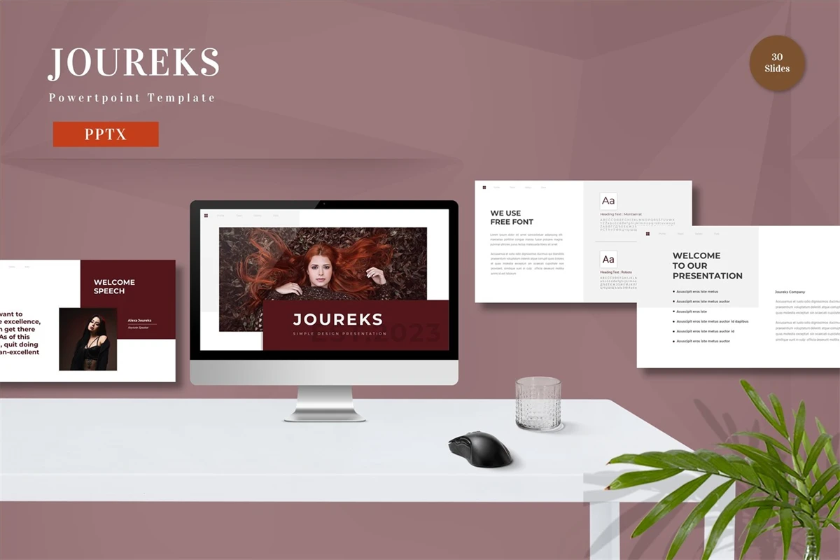 Get it now! **Joureks - Powerpoint Template** for All Business and Personal Needs All elements on this template are editable; input your content, replace your image with a placeholder, change the color, and all presentations include an animated slide to present your slides.