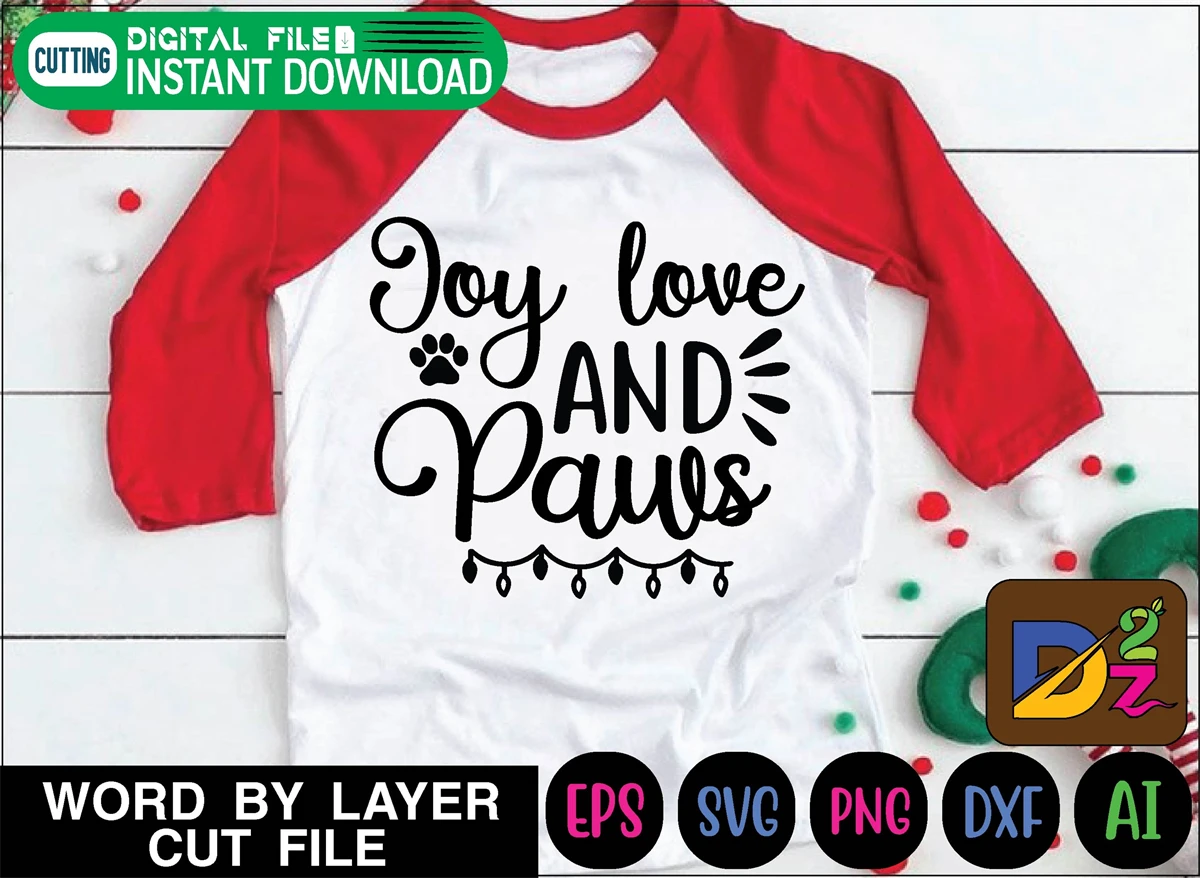 Joy love and paws t shirt design This is an instant download cutting file compatible with many different cutting software/machines like cricut Silhouette