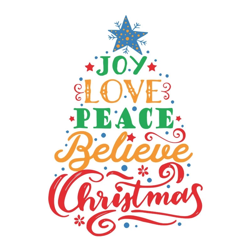 Joy love peace belive Christmas Svg, Christmas Tree Svg