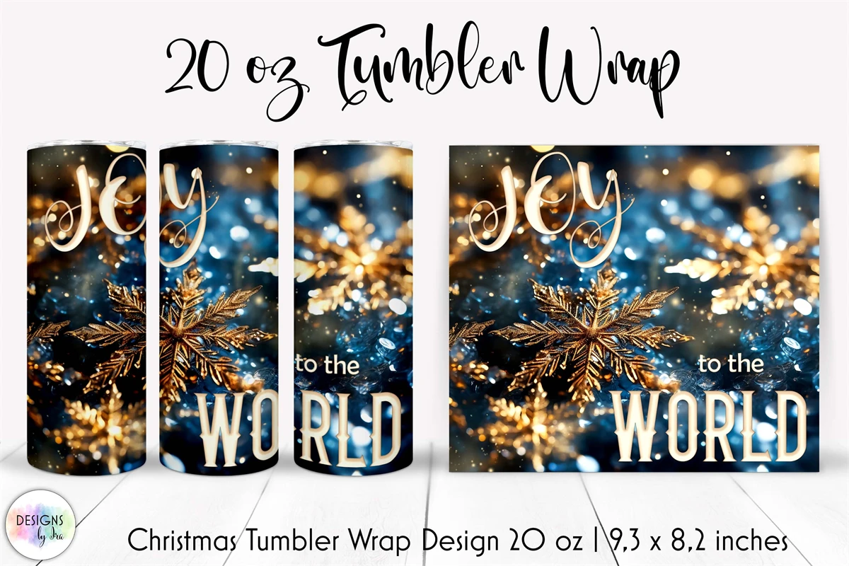 Beautiful Christmas tumbler wrap designs with shimmering snowflakes, stardust inspirational saying.
