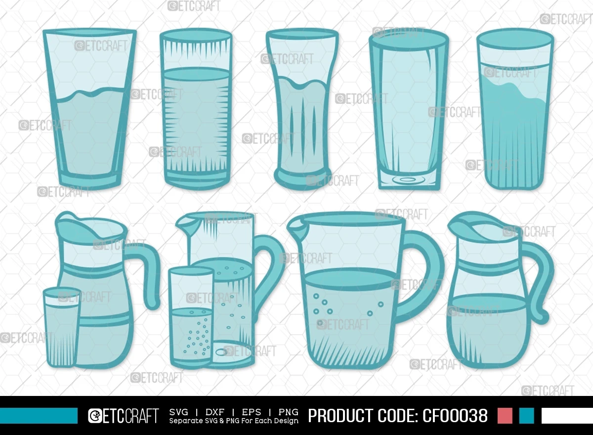 Discover the beauty of hydration with our Jug With Glass Clipart Water Pitcher SVG Cut File Bundle – a digital collection that quenches your creative thirst, providing a refreshing array of clipart showcasing the essence of hydration.