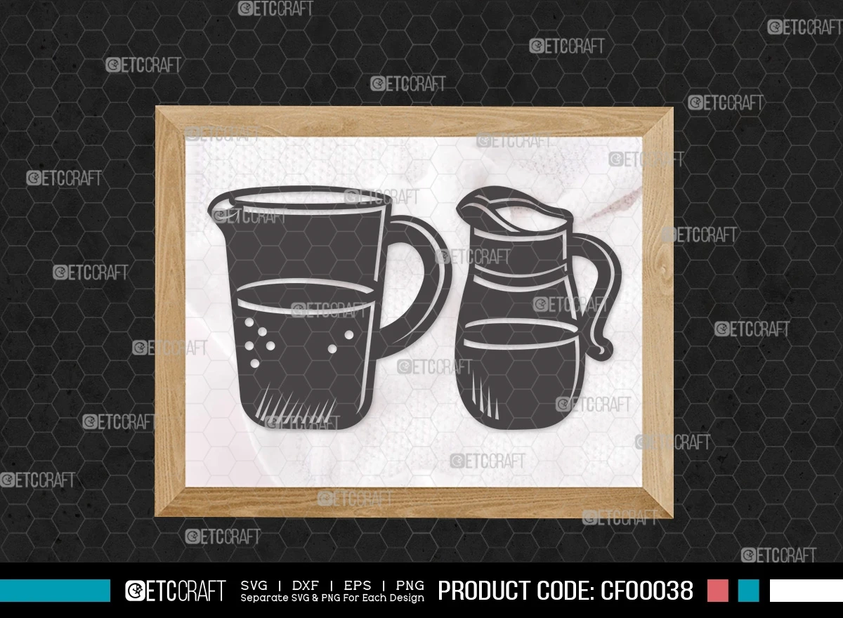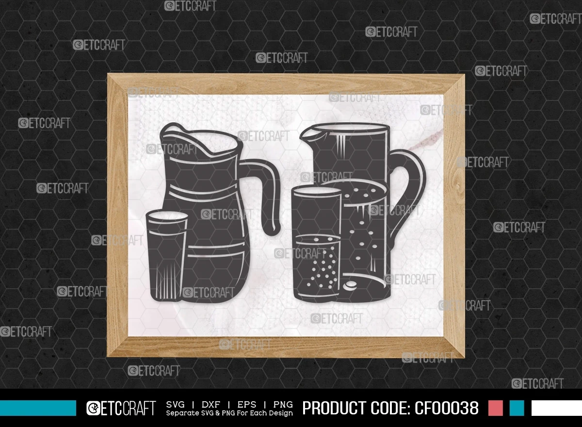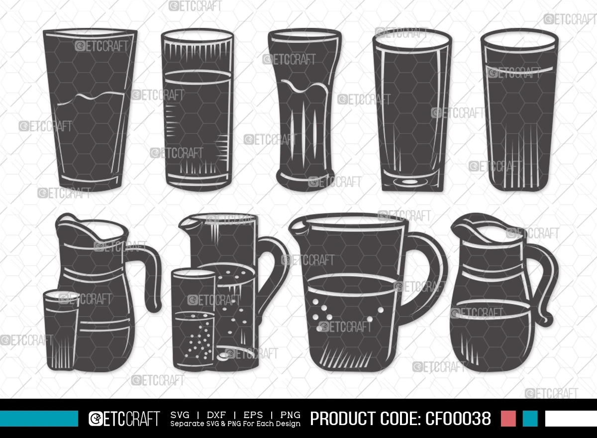 Introducing our Jug With Glass Silhouette Water Pitcher SVG Cut File Bundle – a collection designed to pour creativity into your projects. This bundle offers a range of sleek and stylish clipart featuring jug and glass silhouettes, perfect for quenching your creative thirst.