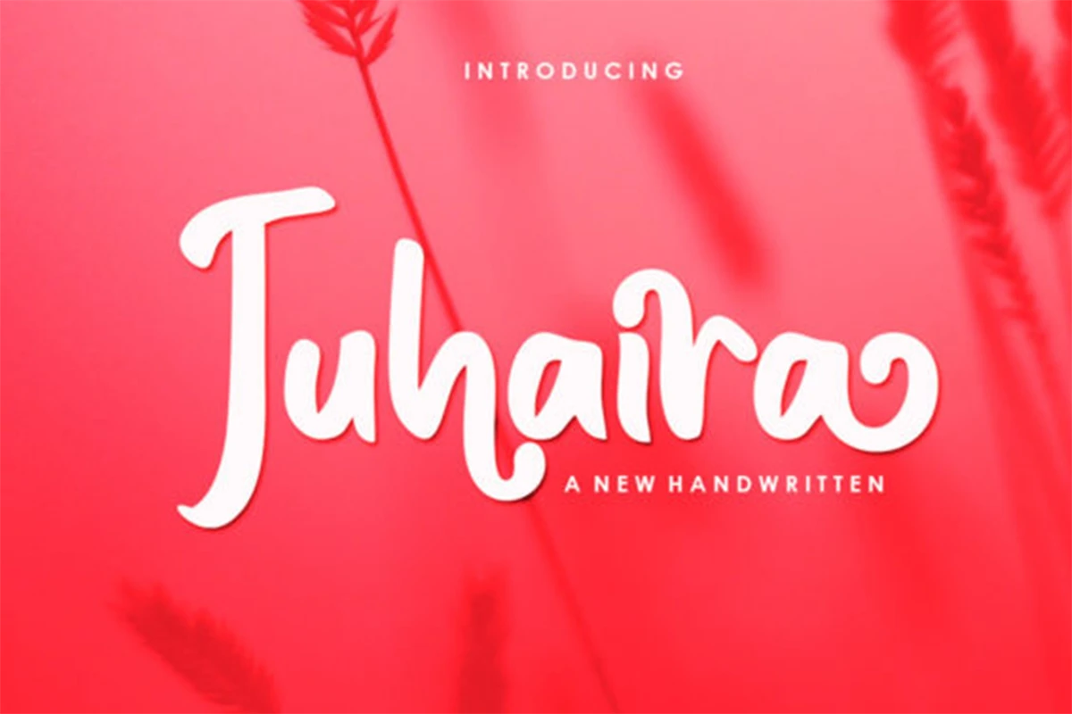 Juhaira is a paint brushed handwritten font. This versatile script font has a wide spectrum of applications ranging from greeting cards to headlines and is guaranteed to add an enchanting feel to your next project. Juhaira is PUA encoded which means you can access all glyphs and swashes with ease!