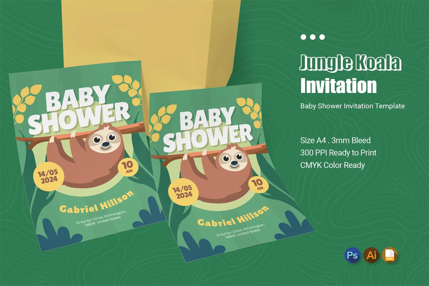 This baby shower invitation card template makes your invitation card look enjoyable, professional, and also simple. It's perfect for parents who want to celebrate the birth of their baby. You can easily to customize to your needs if using **illustrator** you just need to Drag your Image, select the image and placeholder, then right click select Make