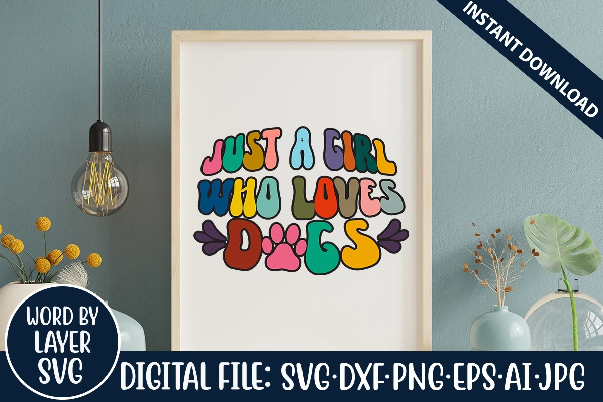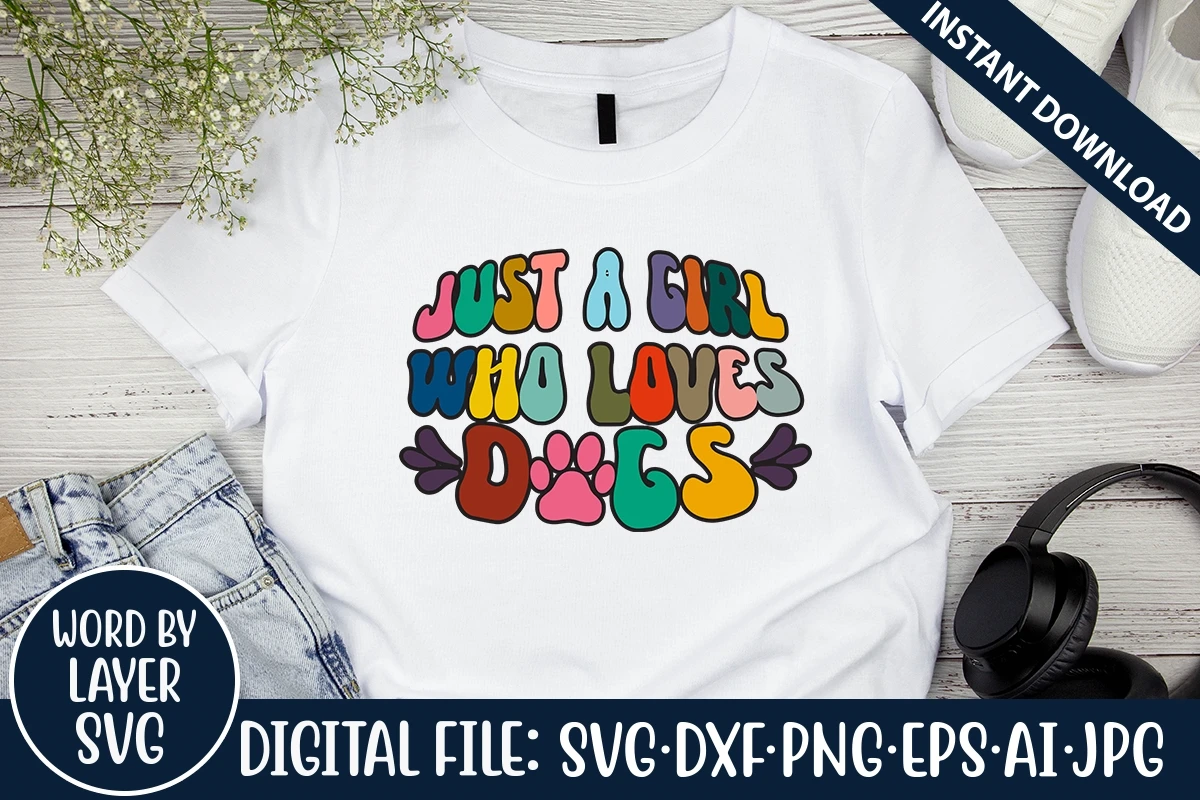 Just A Girl Who Loves Dogs Retro SVG Design, SVG Cut Files