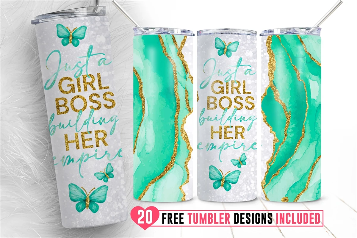 Justa Girl Boss Building Her Empire Skinny Tumbler Butterfly