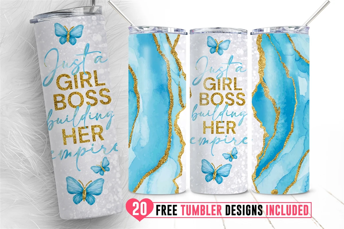 Justa Girl Boss Building Her Empire Skinny Tumbler Butterfly
