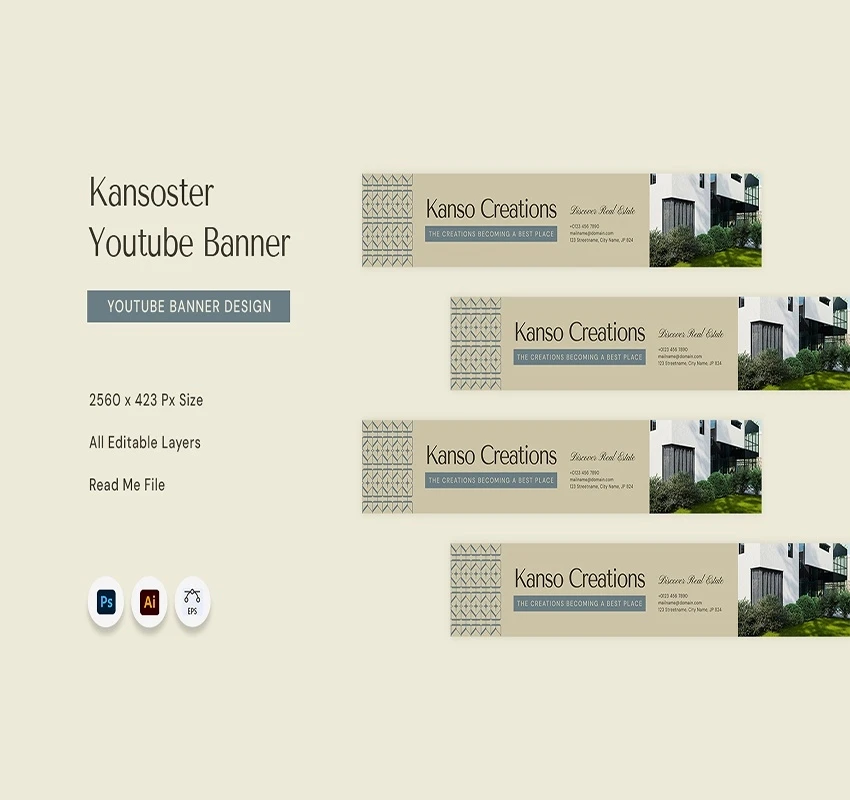 YouTube Banners for personal and business use. Beautifully designed and well-organized, all main elements are easily editable and customizable. Enhance your channels online presence and attract more viewers with this visually appealing YouTube banner.