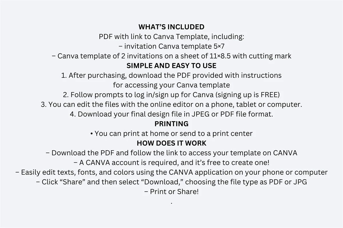 1. After purchasing, download the PDF provided with instructions for accessing your Canva template