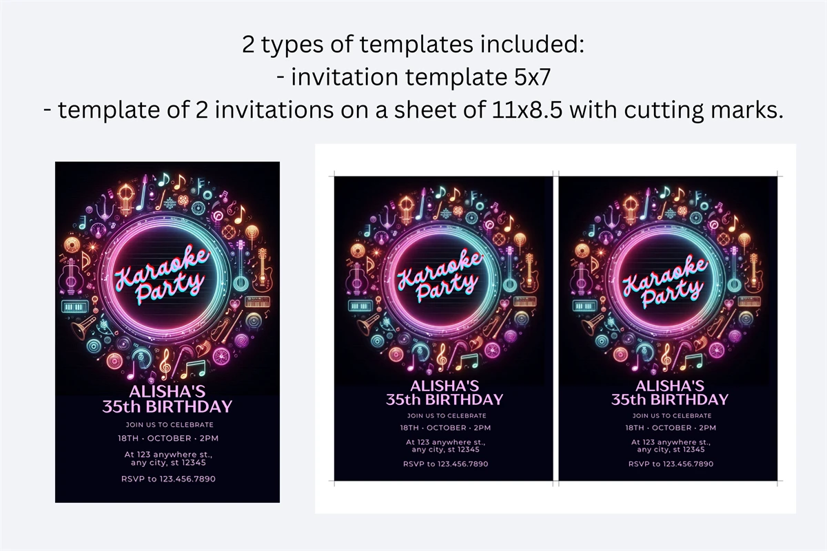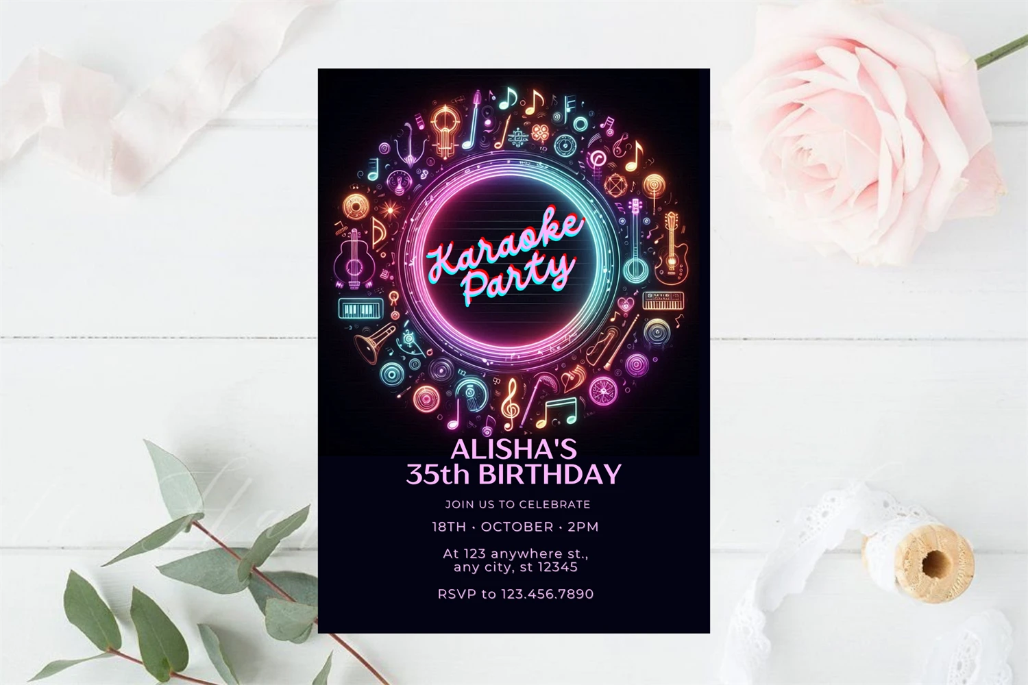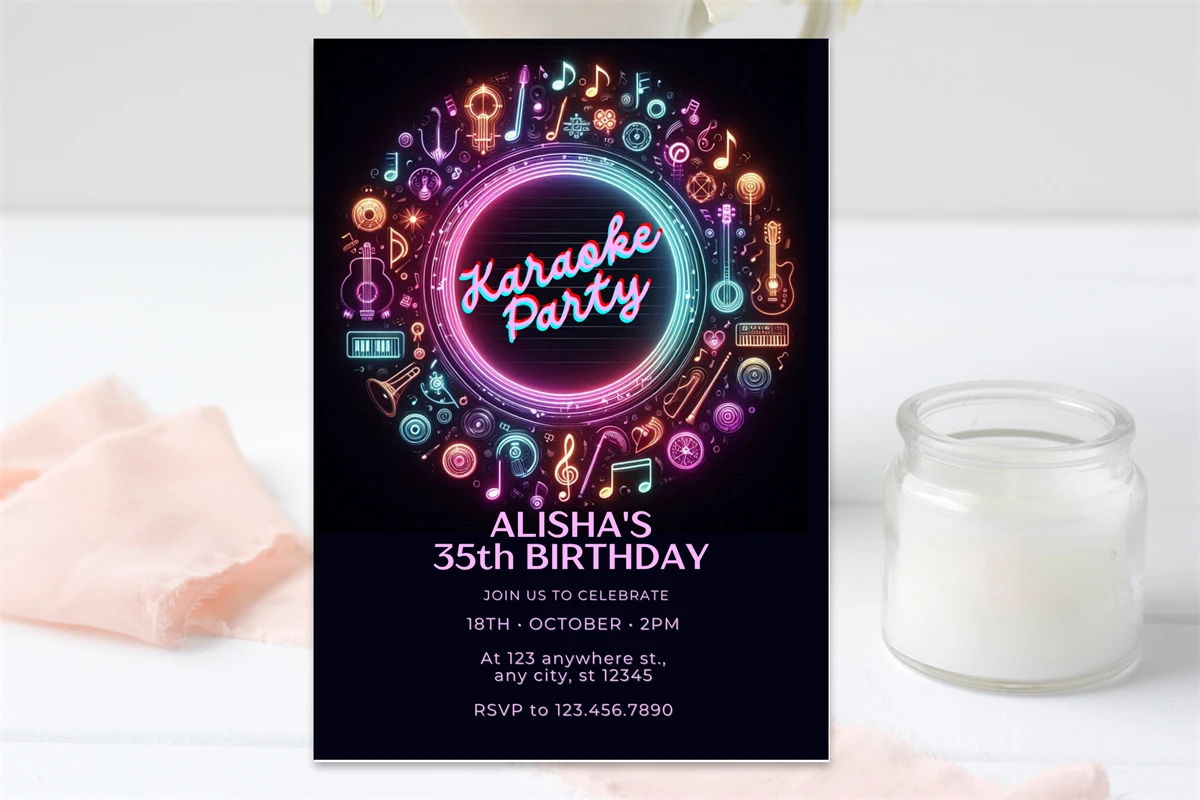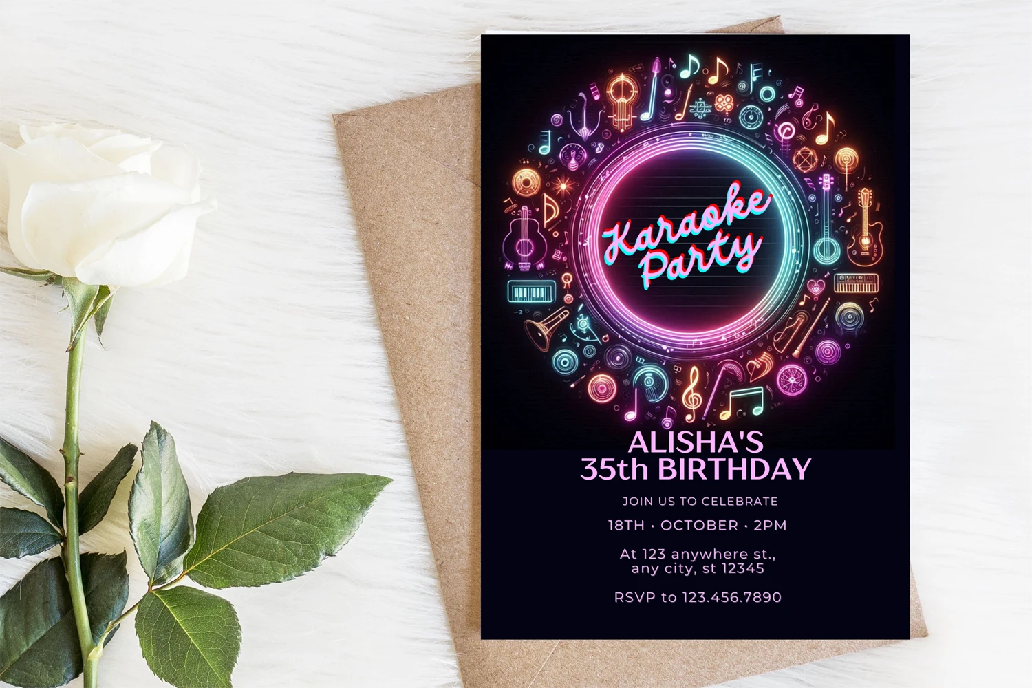 Perfect for any age, this invitation ensures everyone knows its time to grab the mic and celebrate!
