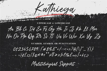 Kathiega is a handwritten brush script written in a relaxed and natural way. The letters were created with a brush on paper and then scanned and carefully drawn into a vector format. This typeface is ideal for use in any professional project, such as blog titles, posters, wedding elements, t-shirts, clothing, book covers, business cards, greeting cards, branding, merchandise, etc.