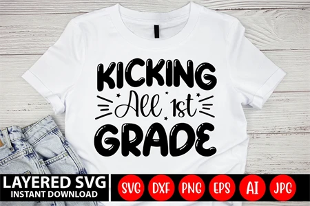 Kicking All 1st Grade Svg Design, Svg Cut File
