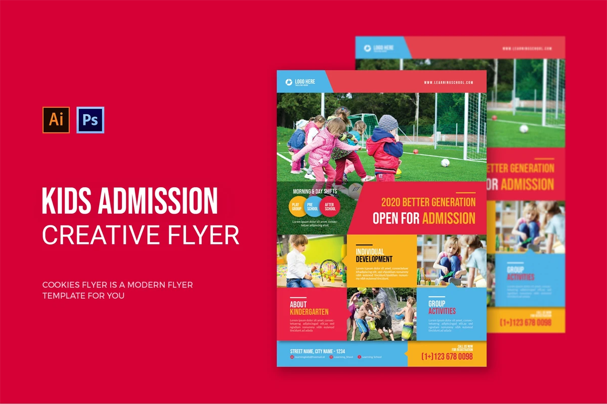 Kids Admission - Flyer. This Flyer template is designed for your company's business needs. very clean and elegant, and also easily edited and adjusted to your liking